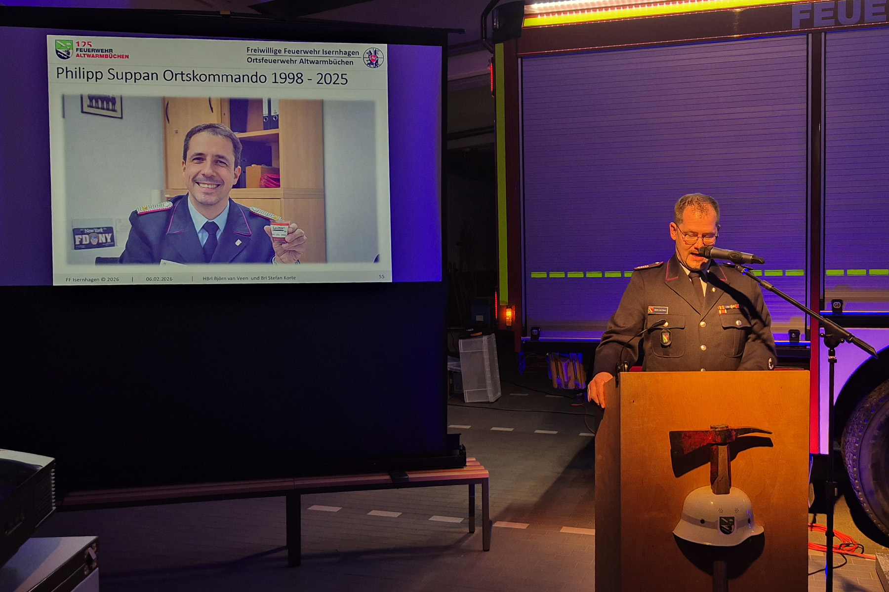 Am 17. Dezember 2025 hat sich Philipp Suppan nach drei Amtszeiten als stellvertretender Ortsbrandmeister entschieden, einen Schritt zurückzutreten. „Eine nachvollziehbare, aber für mich auch traurige Entscheidung“, sagte van Veen. „Danke für deine Unterstützung, den gemeinsamen Weg und vieles, was wir erreicht haben.“ Umso mehr freue er sich, Stefan Korte nun an seiner Seite zu wissen. „Ich bin sicher, dass wir gemeinsam die Feuerwehr Altwarmbüchen sicher durch die – manchmal wilde – See der Feuerwehr führen werden.“
