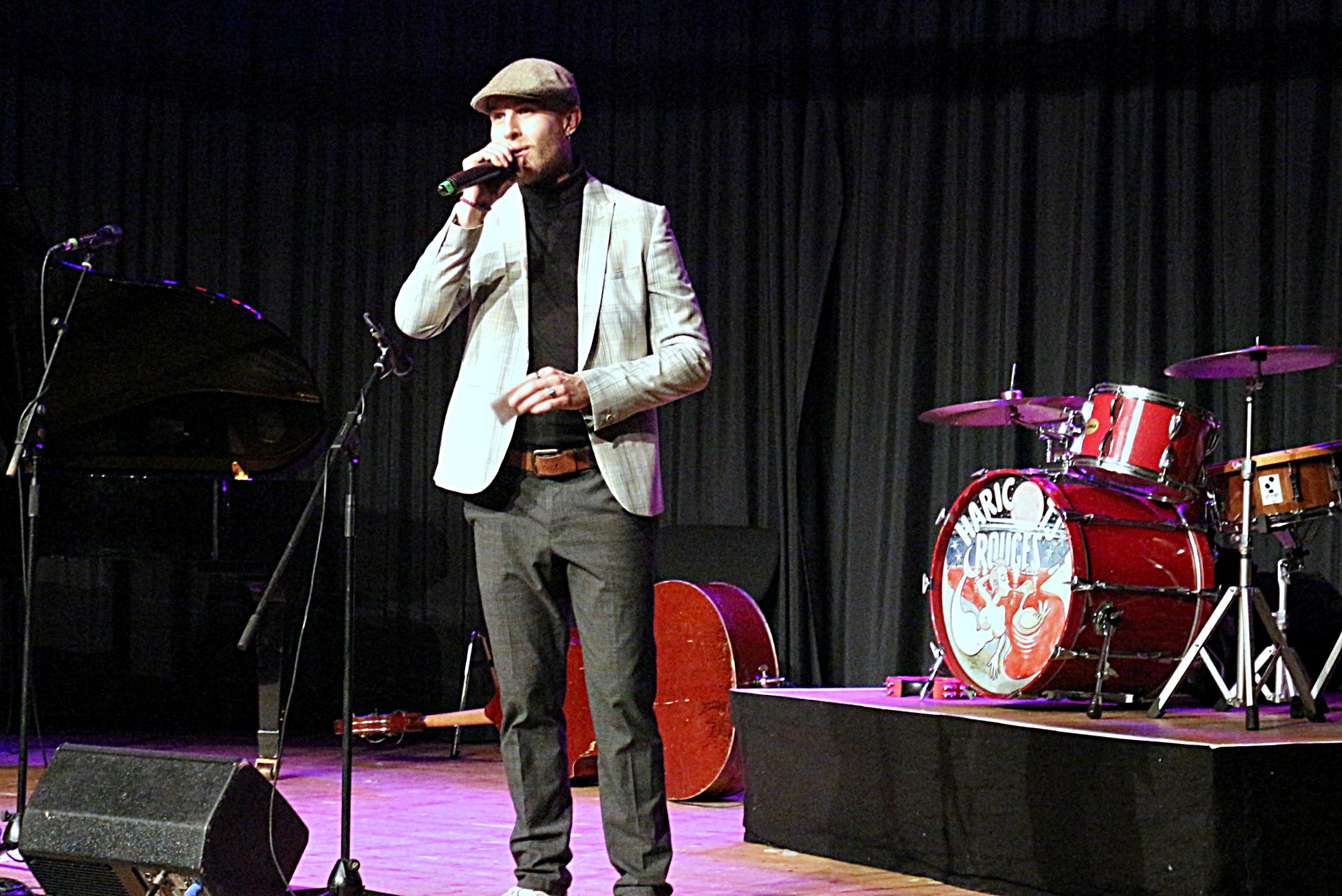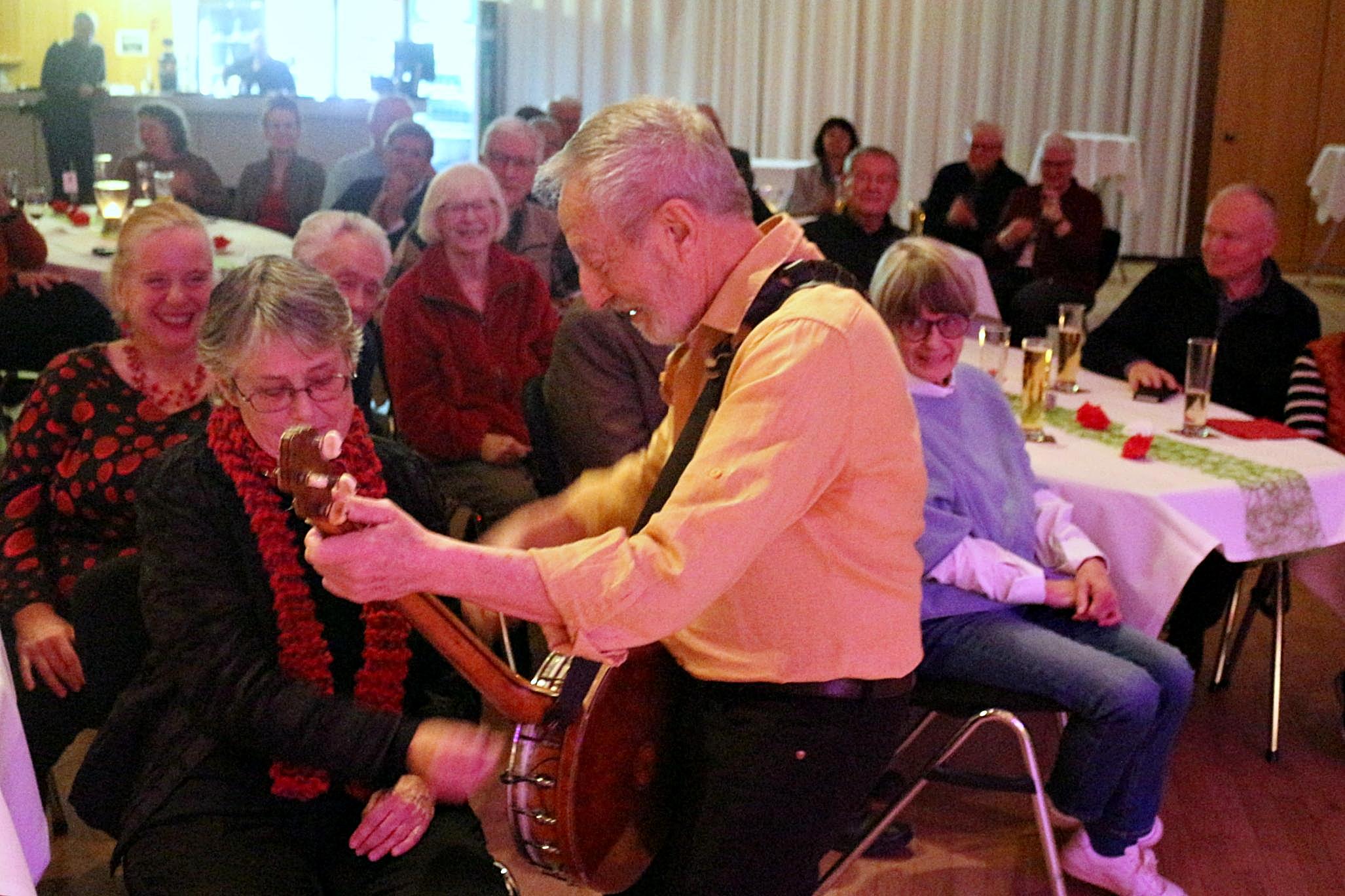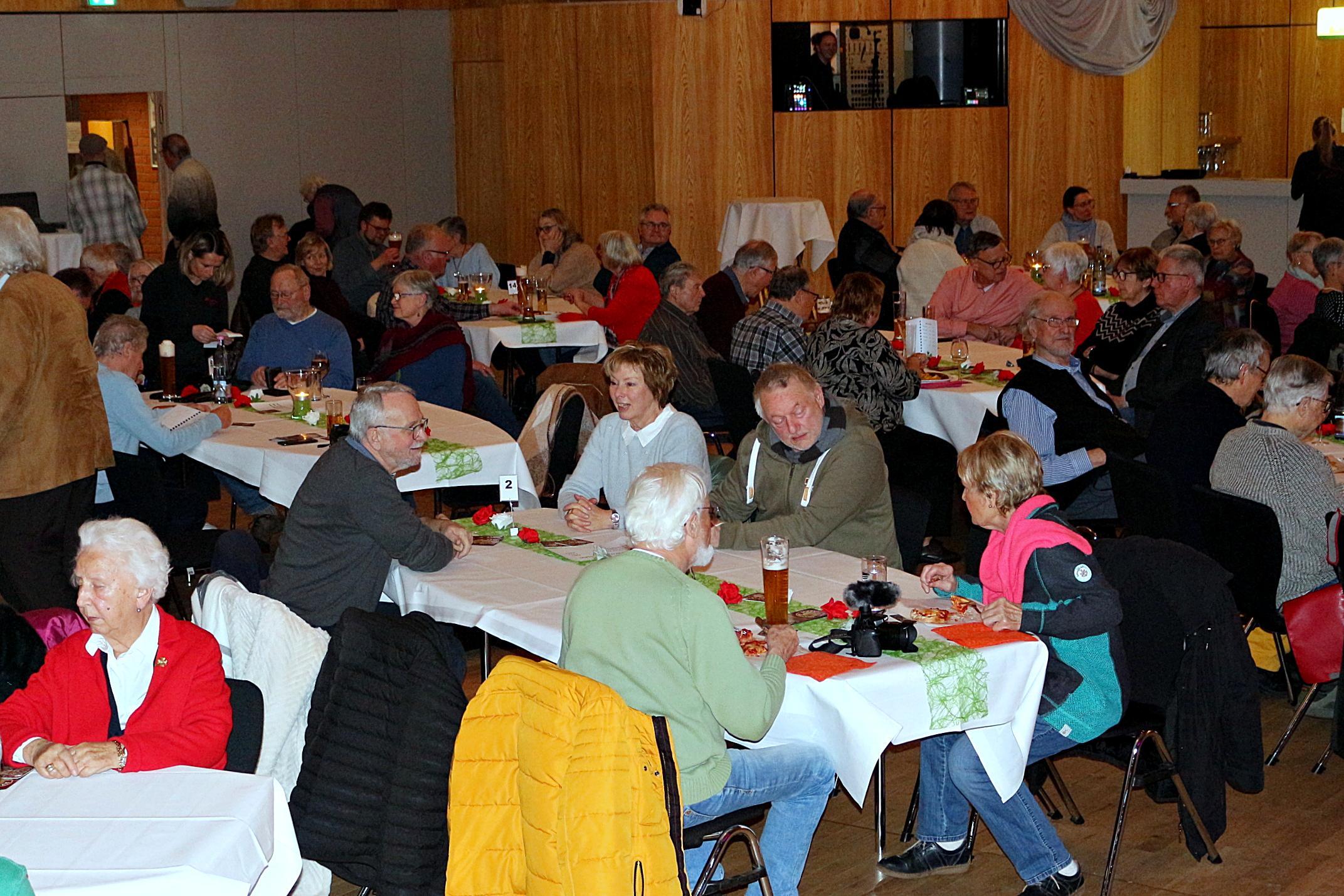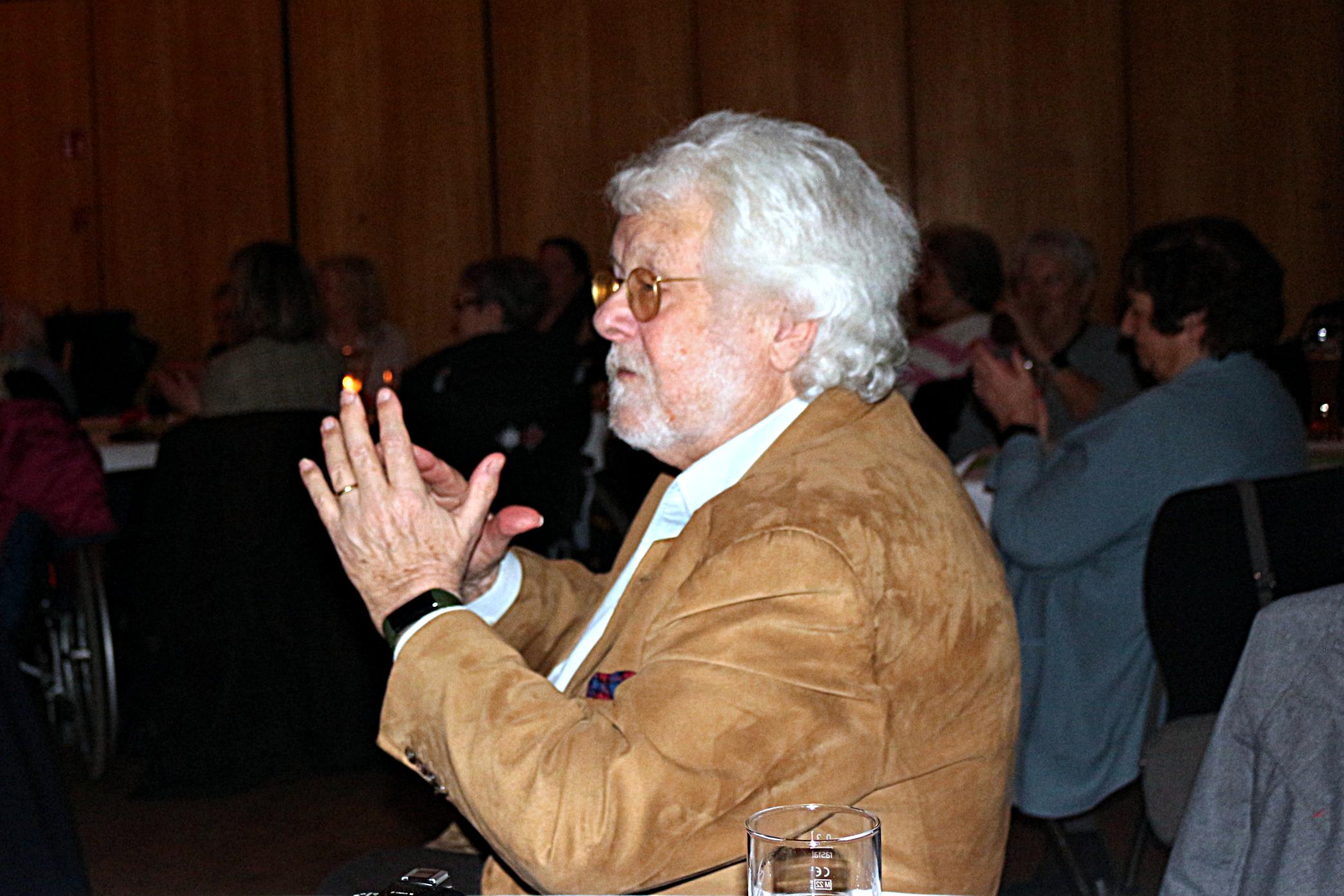 An den gut besetzten 16 Tischen im Bühnensaal des Veranstaltungszentrums ließ sich das interessierte Publikum nicht nur Speis`und Trank schmecken, sondern genoss auch das „akustische Feuerwerk“, so Moderator Sven Fiete Rensing, der siebenköpfigen französischen Formation.