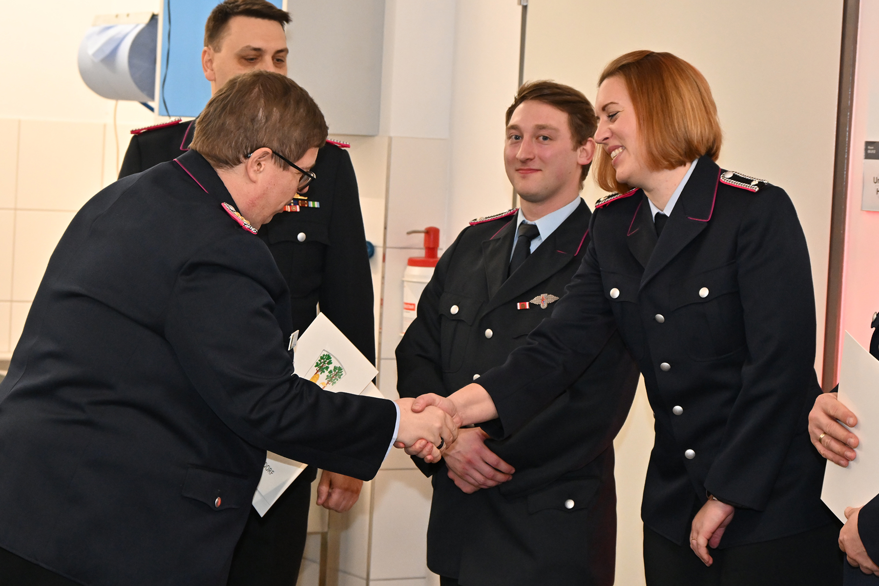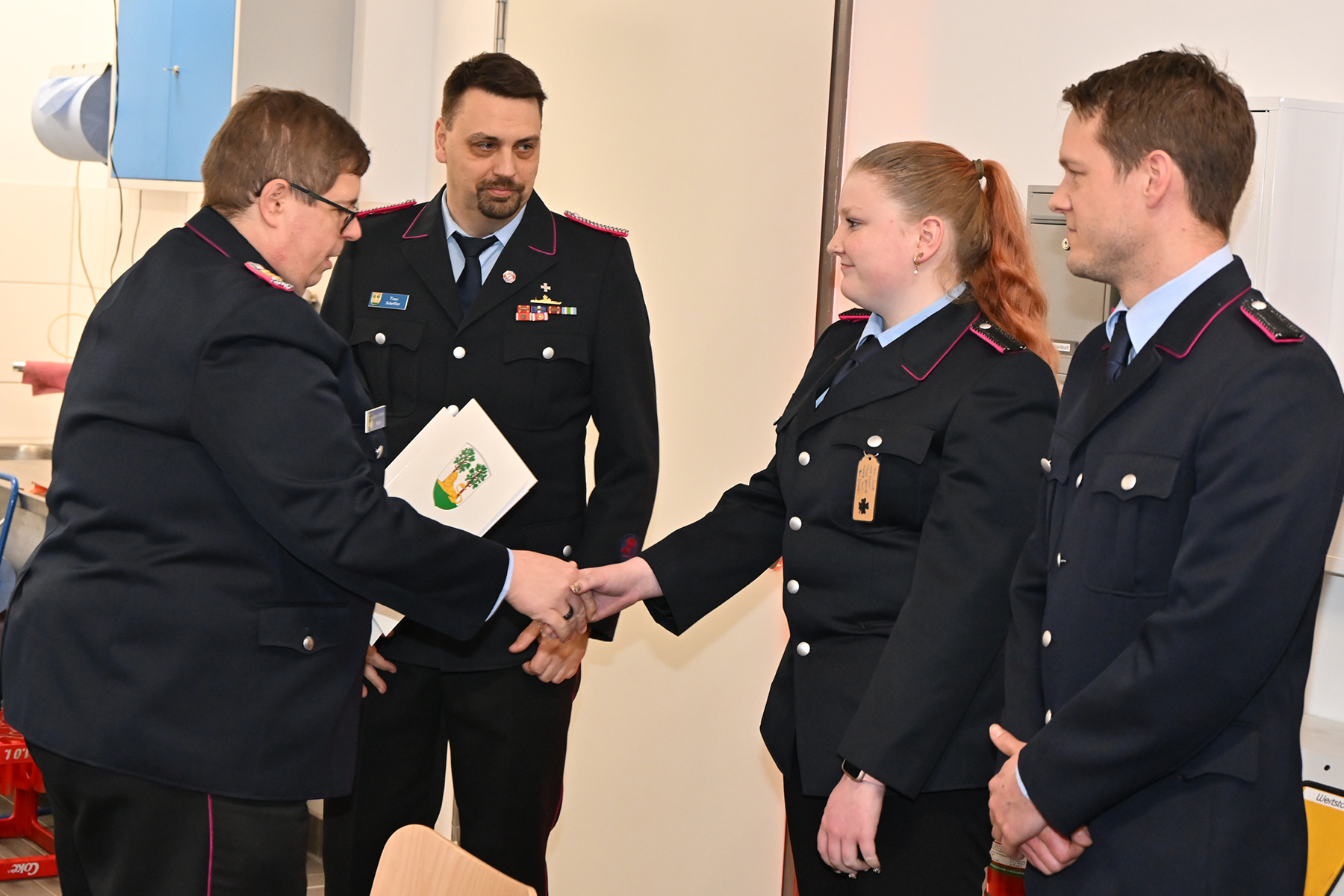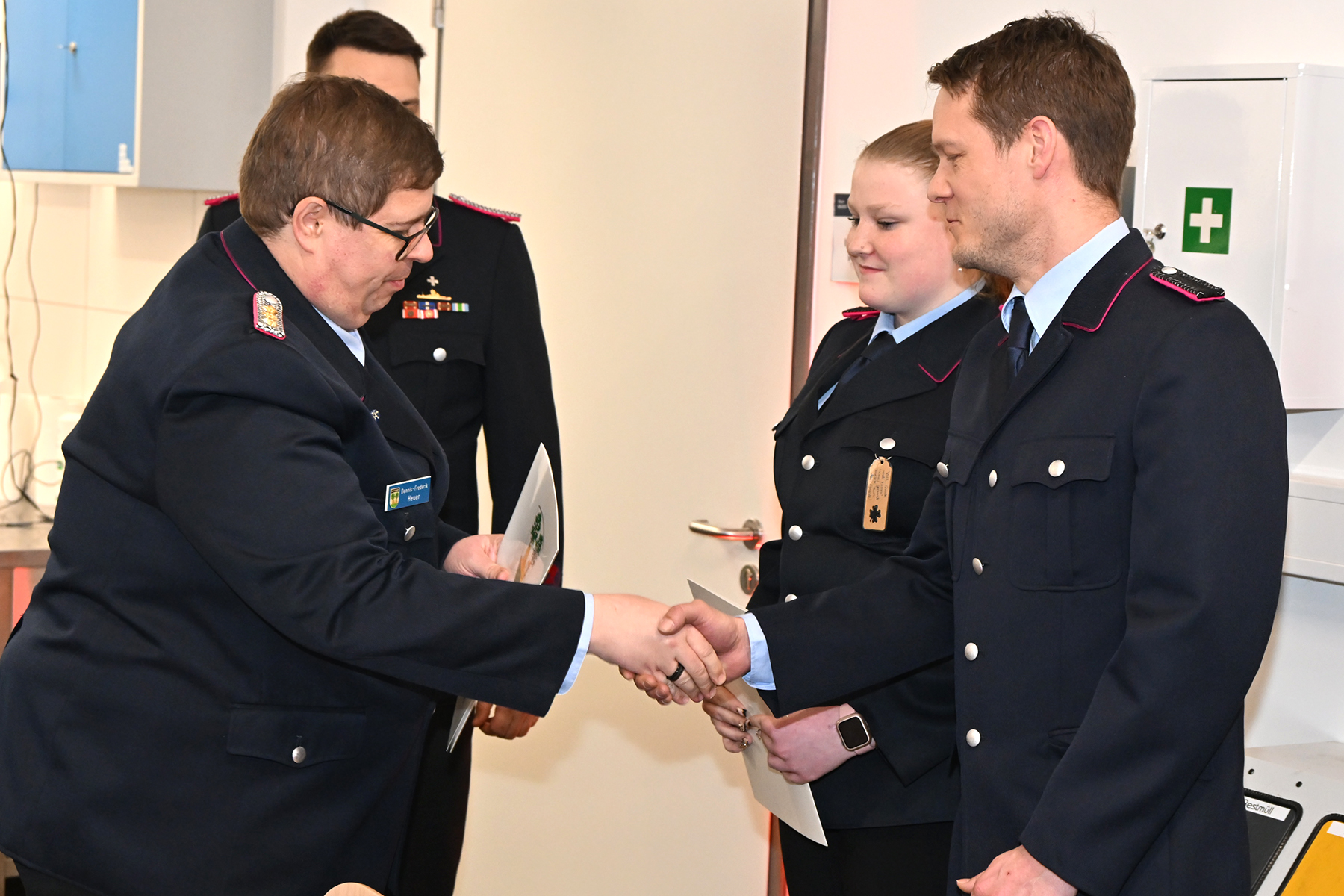 Kim Scharringhausen, Lennart Fischer, Hubertus von Eller-Eberstein und Malte Lammert wurden zur Feuerwehrfrau bzw. zum Feuerwehrmann ernannt und leisteten ihren Diensteid.