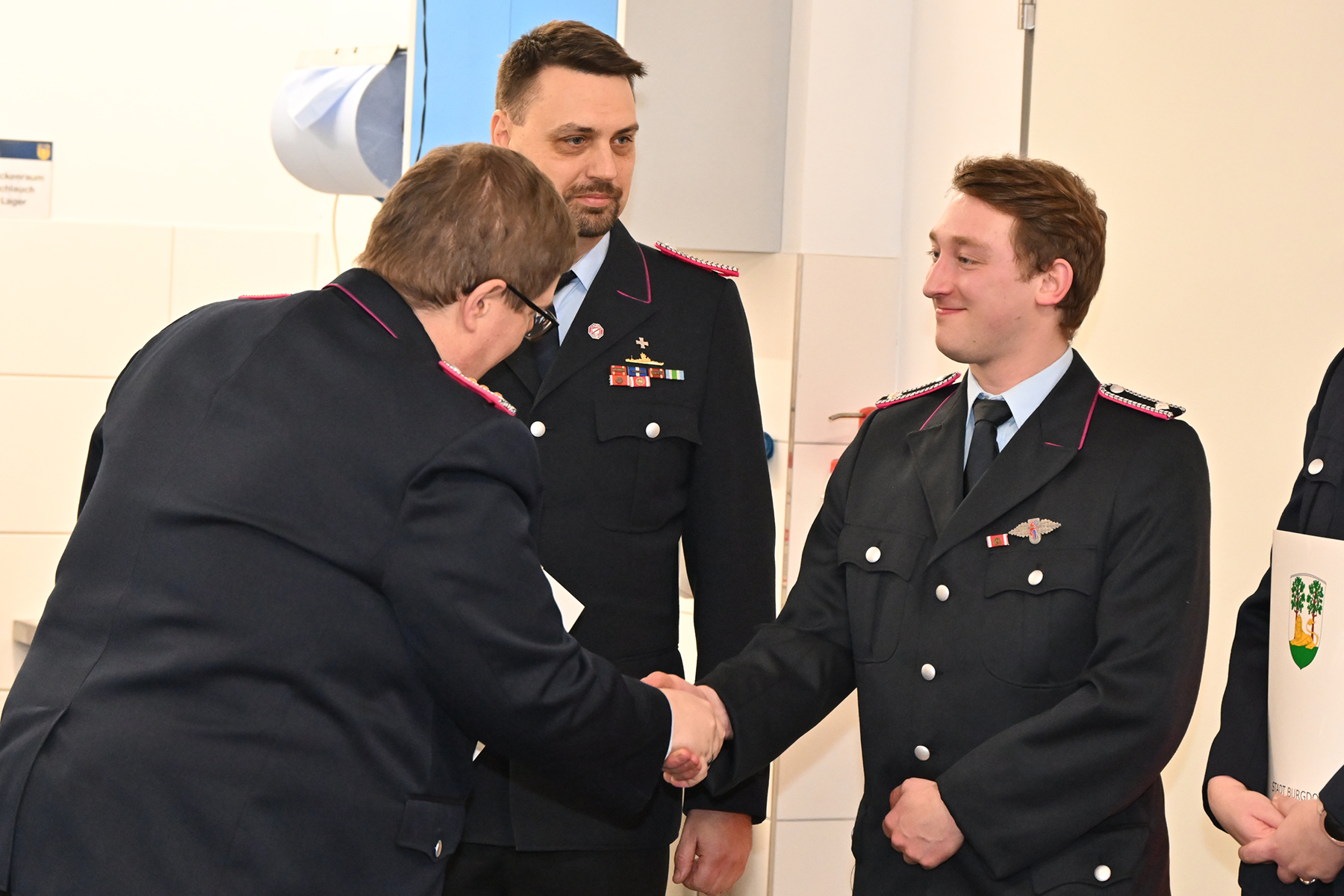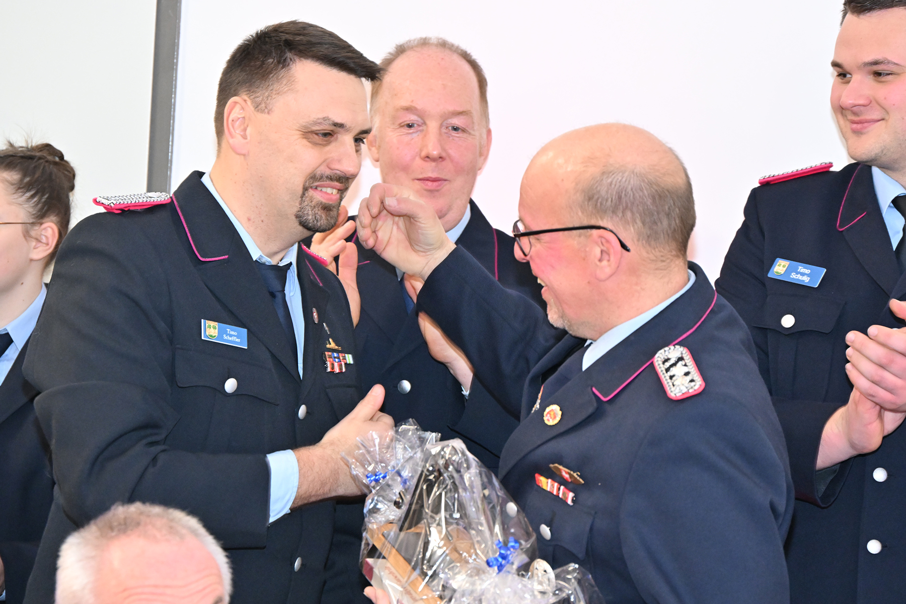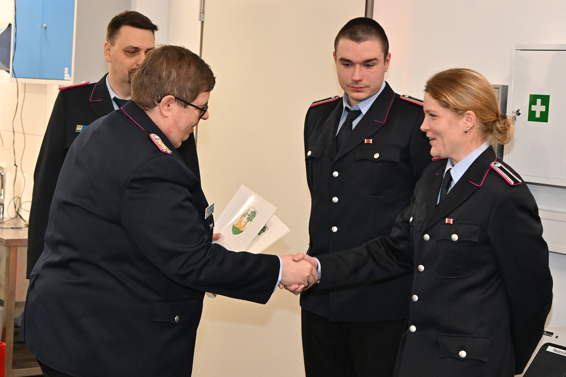 Kim Scharringhausen, Lennart Fischer, Hubertus von Eller-Eberstein und Malte Lammert wurden zur Feuerwehrfrau bzw. zum Feuerwehrmann ernannt und leisteten ihren Diensteid.