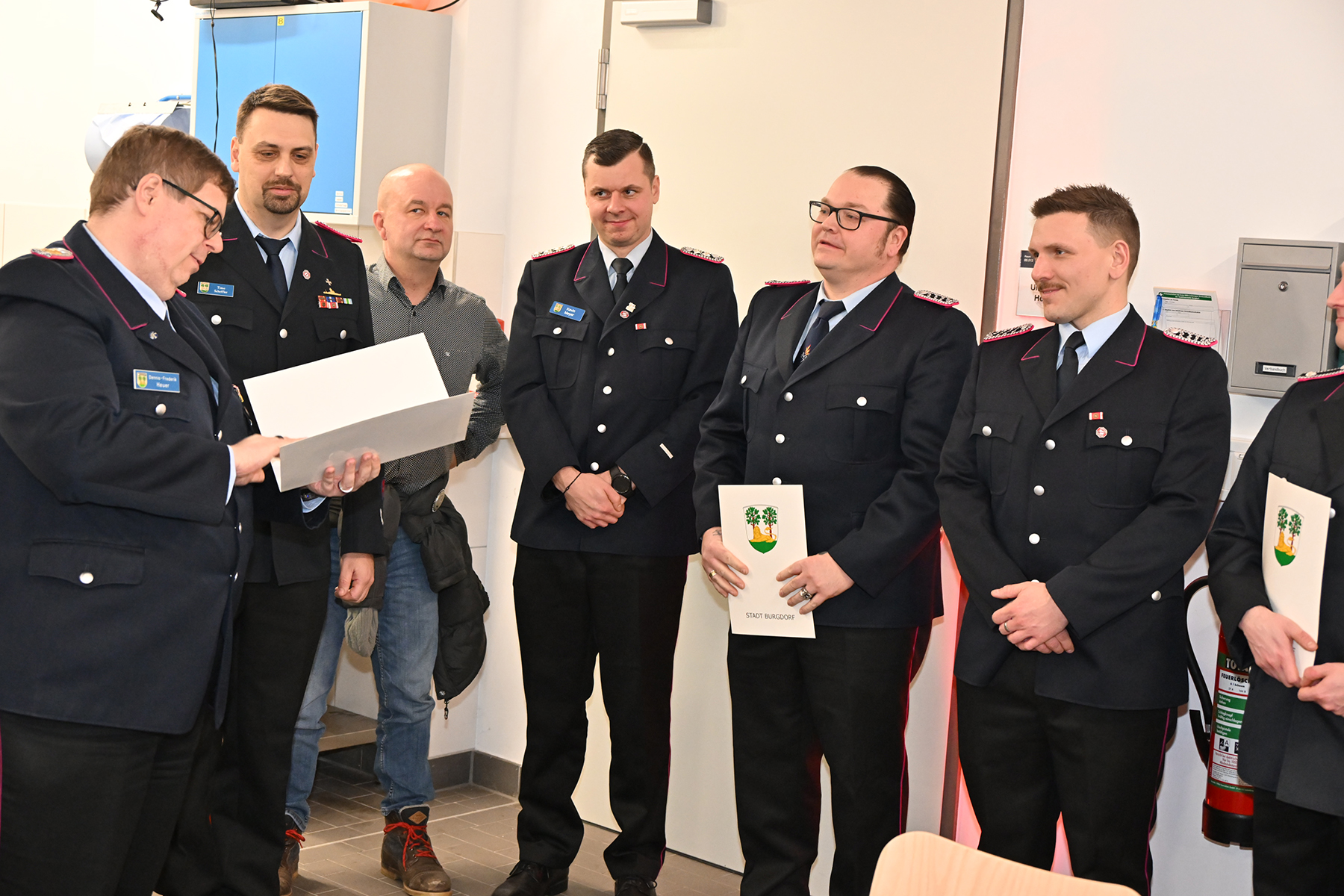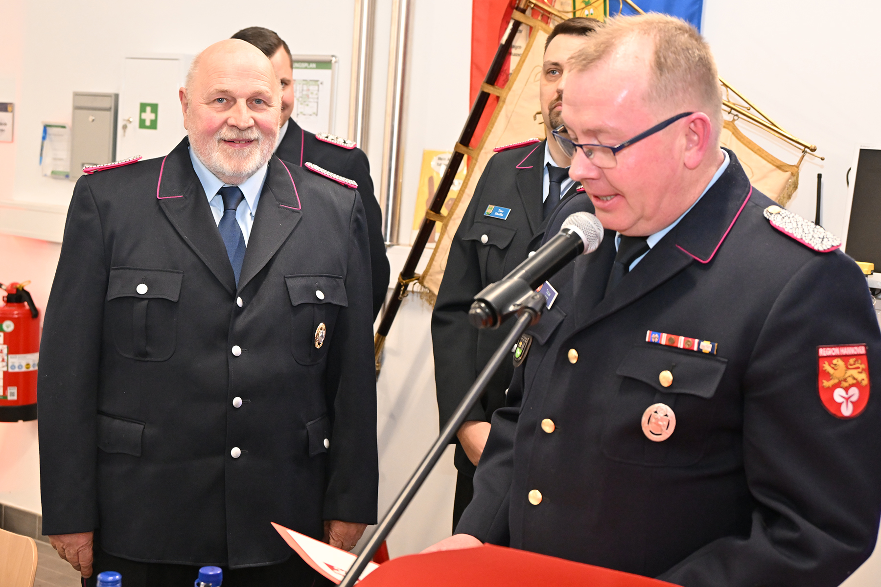 Unter den Gästen waren Burgdorfs Bürgermeister Armin Pollehn, Ortsbürgermeister Cord Reißer, Feuerwehrausschussvorsitzende Beate Neitzel, Erster Stadtrat Michael Kugel, Brandschutzabschnittsleiter Tobias Jacob, Stadtbrandmeister Dennis-Frederik Heuer, Ortsbrandmeister Burgdorf und stellvertretender Stadtbrandmeister Florian Bethmann, Zugführer Historischer Löschzug Jörg Neitzel, Musikzugführerin Jessica Inselmann sowie die Ehrenortsbrandmeister Otto Wietfeldt und Benno Hoffmann. Auch der Fördervereinsvorsitzende Heiner Wehrs konnte begrüßt werden.