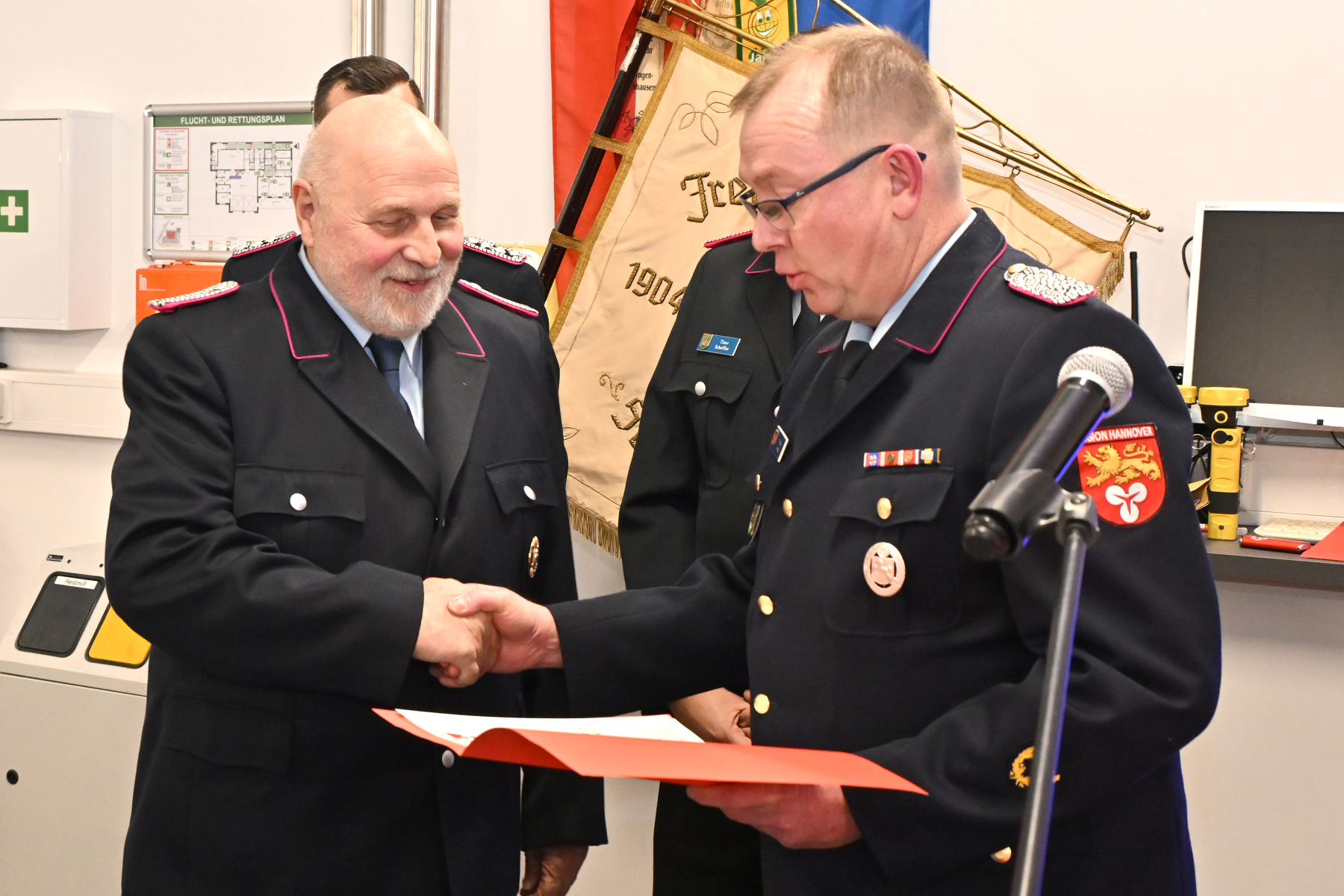 Brandmeister Olaf Buuk wurde das Feuerwehrehrenzeichen des Landes Niedersachsen für 50-jährige Verdienste des Landes Niedersachsen verliehen.