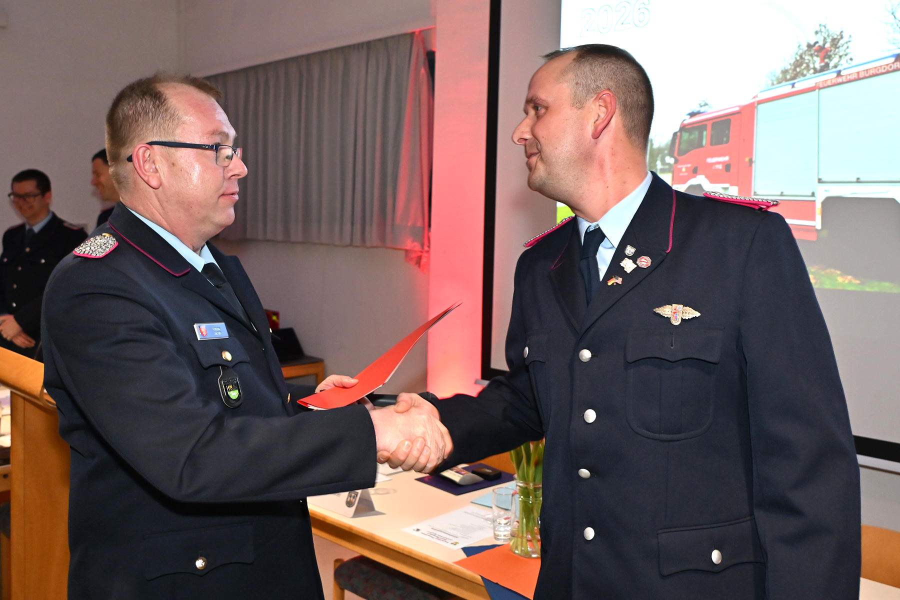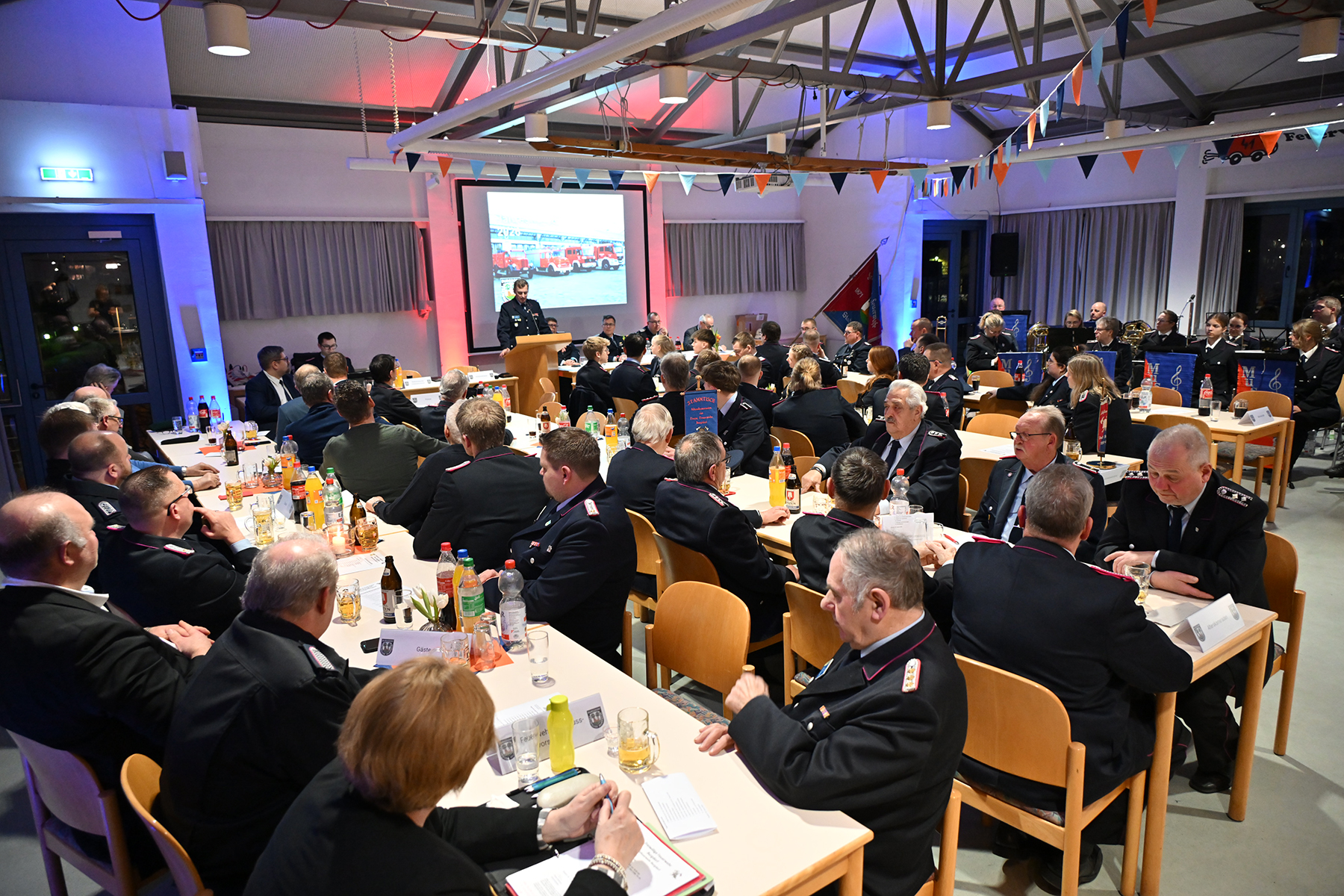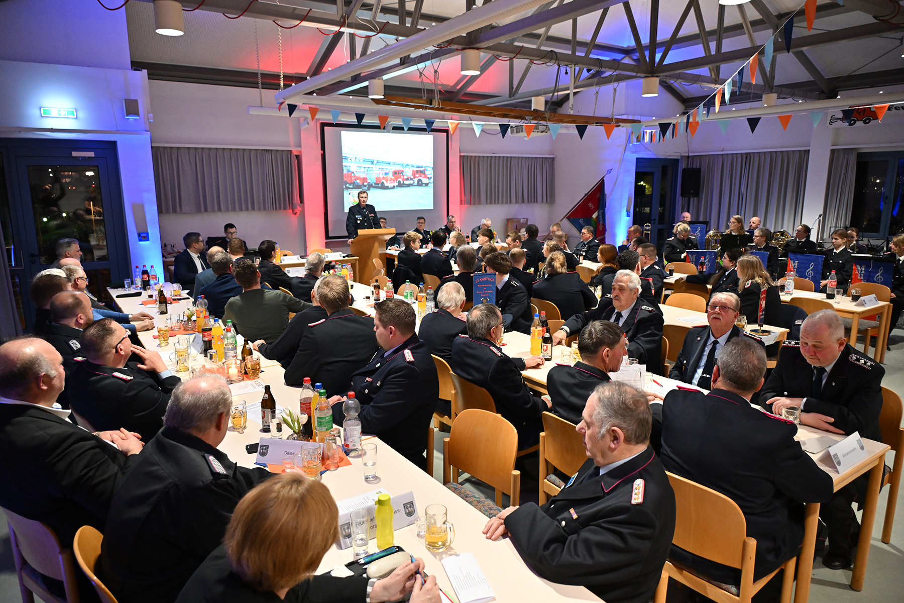 Am Ende eines langen Abends zog sich ein roter Faden durch alle Redner: Dank und Anerkennung für Menschen, die rund um die Uhr, 365 Tage im Jahr, ihren Dienst tun – oft ohne dass die eigene Familie wirklich versteht, was sie dabei erleben. Bethmann sprach es offen an: Vieles, was Einsatzkräfte sehen und durchmachen, könne man nicht mit nach Hause nehmen – und solle es auch nicht. „Zu Hause verstehen sie es nicht“, sagte er schlicht. Umso wichtiger sei der Zusammenhalt innerhalb der Wehr: die lockere Runde nach dem Einsatz, das Gespräch unter Kameraden, das gegenseitige Aufeinander-Achten. „Das ist unglaublich wichtig – nur so können wir weiter geistig gesund bleiben und weiter in die Einsätze gehen.“ Diese Fürsorge füreinander werde zu einem erheblichen Teil durch Spenden finanziert, ohne die vieles nicht möglich wäre.