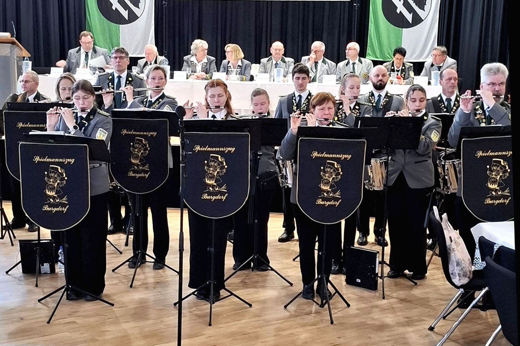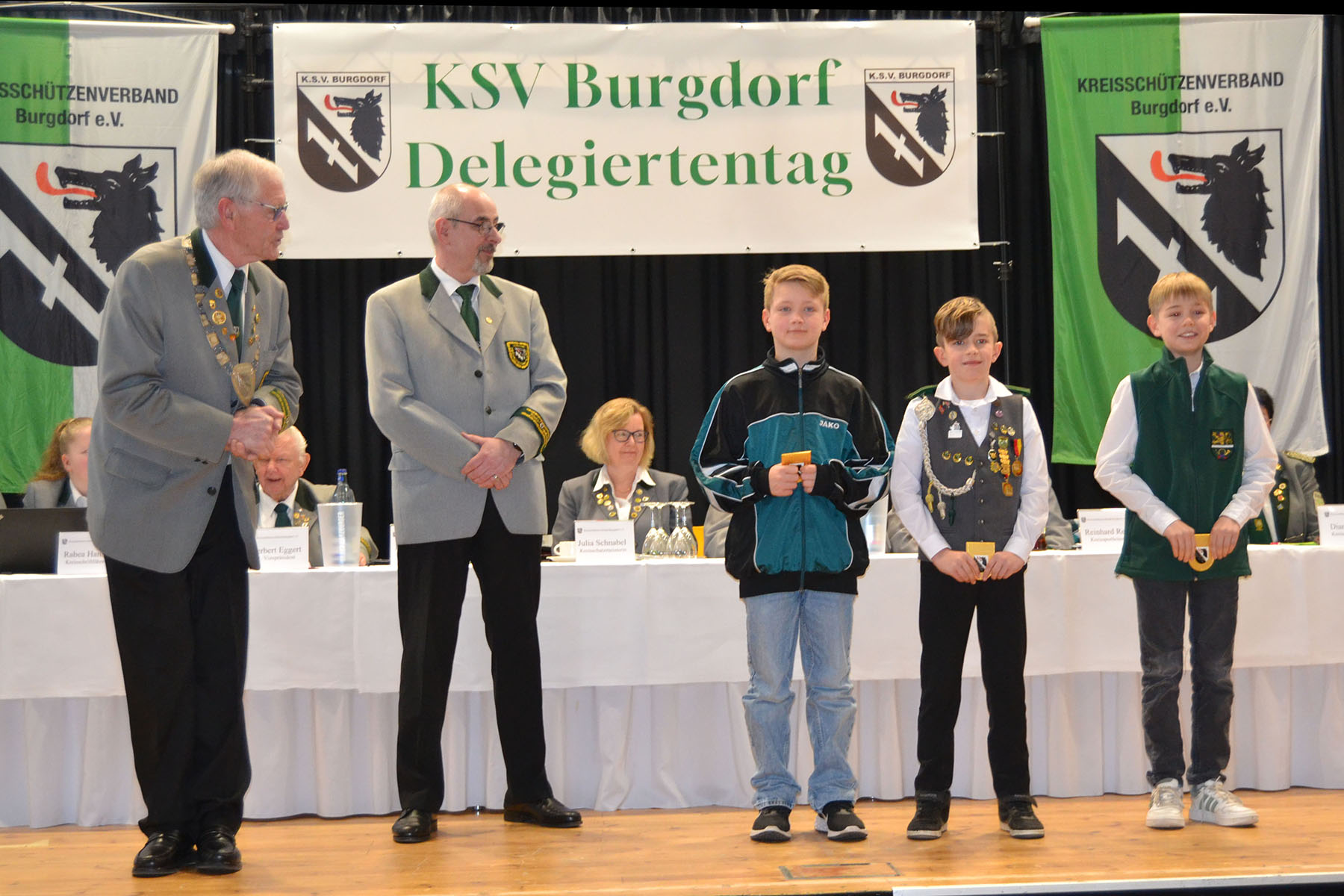 Pünktlich um 14 Uhr eröffnete Präsident Werner Bösche die Tagung und begrüßte die Delegierten sowie zahlreiche Gäste. Allen neu gewählten Vorsitzenden, Ehrenvorständen, dem Vorstand des Verbandes und allen Teilnehmenden wünschte er viel Erfolg in ihren Funktionen sowie Freude an der Vereinsarbeit. Als Ehrengäste konnten Burgdorfs Bürgermeister Armin Pollehn, der Landessportleiter des Niedersächsischen Sportschützenverbandes Reinhard Zimmer, Jürgen Riesch als Ehrenmitglied und Stifter der Kreiskinderkönigskette sowie Gisela Neuse, ebenfalls Ehrenmitglied des Kreisschützenverbandes Burgdorf, begrüßt werden. Musikalisch begleitet wurde die Tagung vom Spielmannszug Burgdorf.