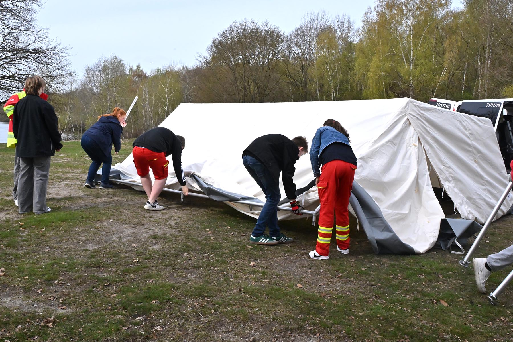 Es war ein besonderer Moment am Altwarmbüchener See: Am heutigen Sonntag, 12. April 2026, wurde zum allerersten Mal ein nagelneues, 20 Quadratmeter großes Zelt aufgebaut – und die Gesichter der DLRG-Jugend ließen keinen Zweifel daran, was dieses Stück Plane und Gestänge für sie bedeutet. Bislang musste die Ortsgruppe Isernhagen für Zeltlager jedes Mal ein Zelt von außen ausleihen. Damit ist es vorbei.