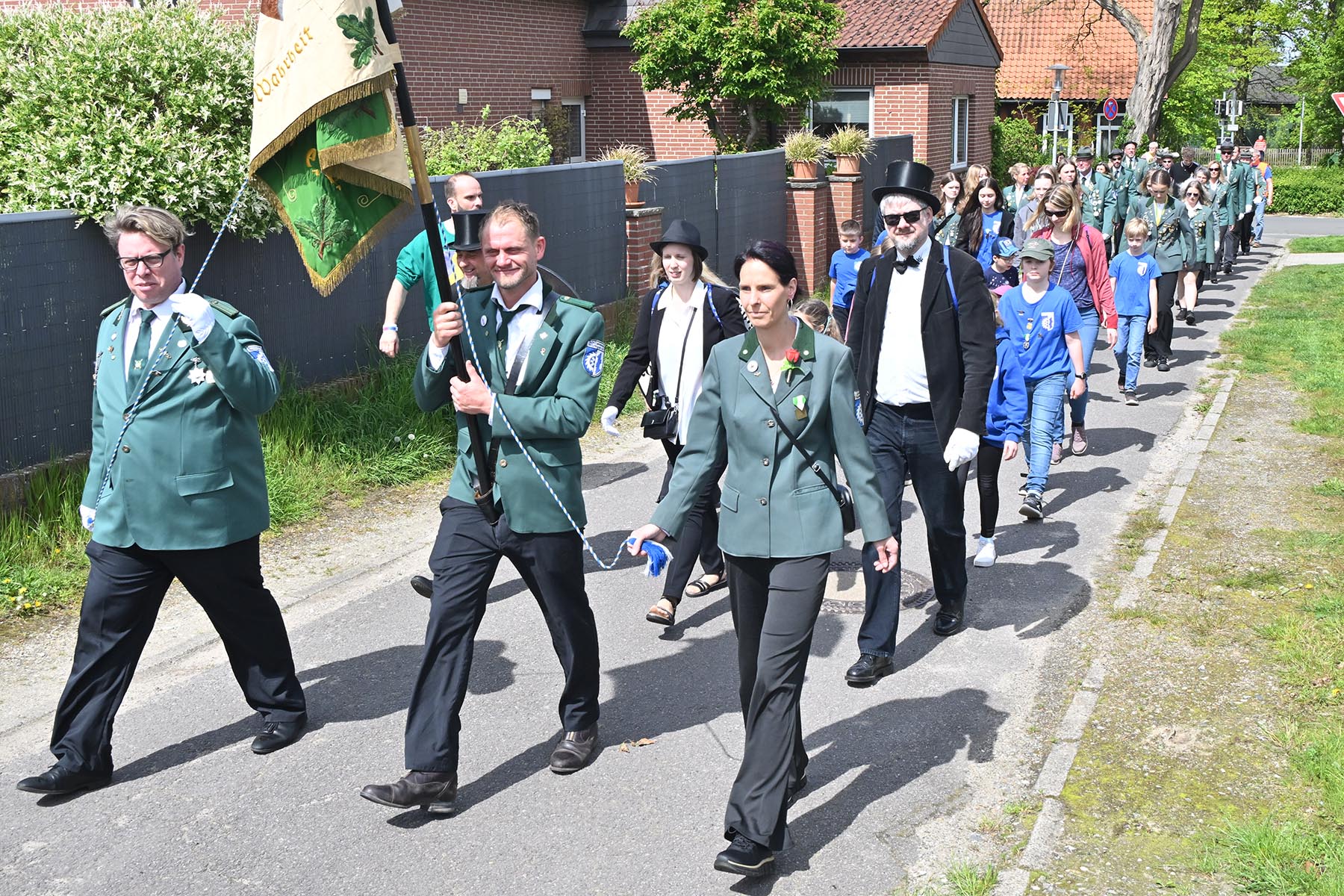 Der Sonntag, 26. April, beginnt um 11 Uhr mit dem Königsessen. Nach Pokalverleihung, Festumzug und Kaffeenachmittag mit selbst gebackenem Kuchen endet das Fest gegen 20 Uhr auf Bethmanns Wiese.