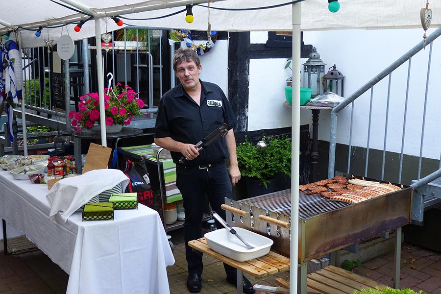 Ungeachtet der bevorstehenden und sicherlich anstrengenden "Mission" Schützenfest mit allen Verpflichtungen der Akteure aus Schützenverein und deren Korporationen, haben sich Vorstand, Festvorstand und Ehrenmitglieder im Biergarten der Gaststätte "Riff" an der Hannoversche Neustadt getroffen, um im kleinen Kreis bei Bier (Schnaps, vom Wirt spendiert) und Gegrilltem auf die nächsten Tage vorzubereiten und letzte Details, Prioritäten, Pflichten und Kurzweiliges zu besprechen.