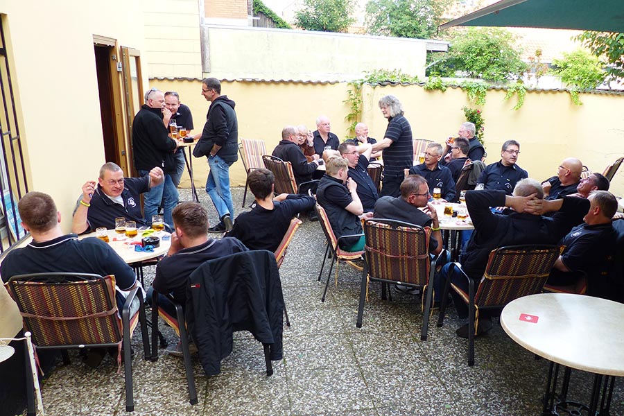 Derweil traf sich der Club Germania, Korporation in der Burgdorfer Schützengesellschaft, zu einem letzten geselligen "intimen" Zusammensein im Biergarten der "Hopfenquetsche" in der Schmiedestraße, um fern jeder Verpflichtung und Aufgabe, die in den nächsten Tagen auf den Club und seine Mitglieder zukommen wird, noch ein gemeinsames Bier und eine gepflegte Gulaschsuppe zu genießen.