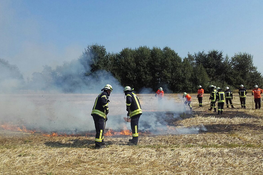 Ein brennendes Stoppelfeld ist bei Trockenheit und sommerliche Temperaturen keine Seltenheit und die äußeren Bedingungen bieten dem Feuer beste Bedingungen. Diese waren am gestrigen Sonnabend ebenfalls gegeben, als die Feuerwehren der Stadt Burgwedel das Löschen eines Stoppelfeldes in Theorie und Praxis übten.