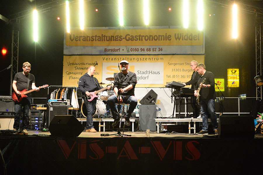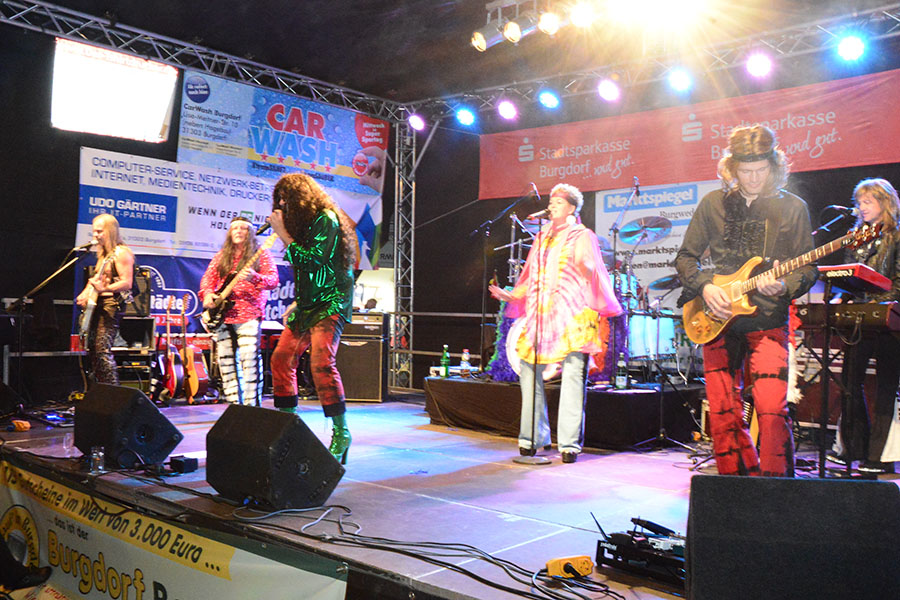 Um 19 Uhr waren alle fünf Bühnen von den Bands in Beschlag genommen worden und so konnten die Besucher aus einem ein breiten Spektrum wählen. Einige hielten sich gerne den ganzen Abend an einer Bühne auf, andere wechselten mal hier und da von einer Bühne zur nächsten.