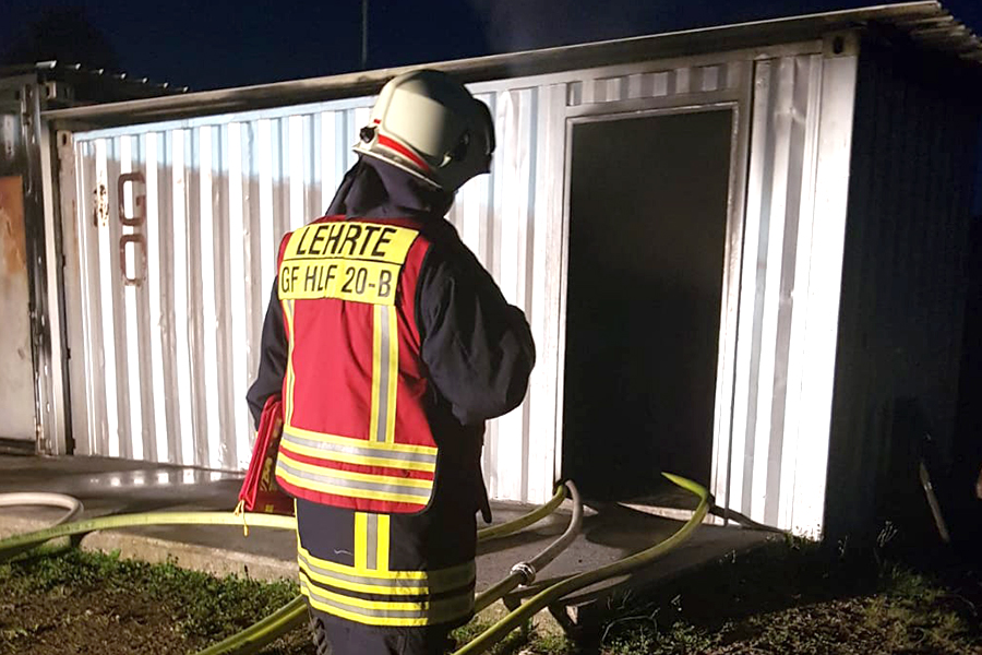 Am vergangenen Freitag, 18. September 2020, waren Einsatzkräfte der Freiwilligen Feuerwehr Lehrte zu einem Einsatz der ganz anderen Art unterwegs: In der Realbrandanlage der Firma FeuReX Nord in Helmstedt, in der jüngst auch schon Burgdorfer Brandbekämpfer übten, waren die Lehrter Feuerwehrkräfte im Modul „Einsatztraining“ bei einem Bungalowbrand und einem Feuer in einer Wohnung in einem Mehrfamilienhaus gefordert. Alles unter realistischen aber dennoch kontrollierten Bedingungen, für die die Trainer von FeuReX Nord sorgten..