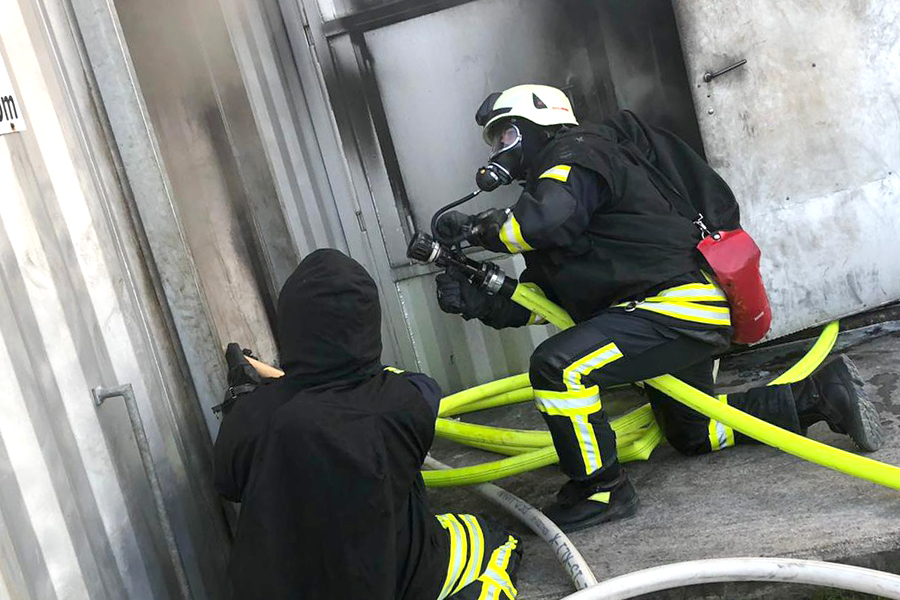 Die zweite Gruppe stand dann einem Feuer in einer Wohnung im 2. Obergeschoss eines Mehrfamilienhauses gegenüber. Mehrere Personen waren vermisst, das Feuer wurde im Brandraum von den Trainern noch einmal angeheizt, so dass die Atemschutztrupps, dieses Mal bestehend aus mit weniger erfahrenden und jungen Einsatzkräften, an ihre Leistungsgrenzen gebracht wurden. "Es war gut, dass wir hier kein Standard-Training gemacht haben, sondern eine Einsatzübung unter Realbedingungen", so Marco Beimes um Rückblick, denn so konnten alle Abläufe noch einmal komplett geübt werden. In einer Einsatznachbesprechung wurden später angesprochen, was gut gelaufen ist – oder was eben weniger gut gelaufen ist. Egal ob jemand schon jahrelang bei der Feuerwehr tätig ist oder gerade erst neu hinzugestoßen ist: Für alle Teilnehmer brachte das Training neue Erfahrungen und neues Wissen, welches sie im Einsatzfall nun nutzen können. Denn auch im realen Einsatz werden exakt dieselben ehrenamtlichen Kräfte an der Einsatzstelle stehen, um Leben zu retten und Feuer zu bekämpfen.