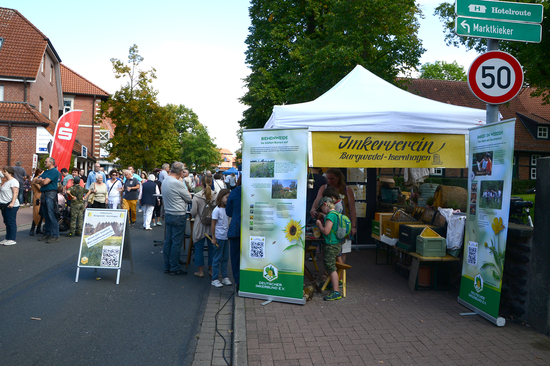 Nicht weniger Los war auf der Hannoverschen Straße, wo Vereine wie der Imkerverein, der Deutsche Amateur-Radio-Club (DARC), Allgemeiner Deutscher Fahrrad-Club (ADFC), NABU oder der Tischtennis-Klub Großburgwedel (TTKG) sich präsentierten. Aber auch das DRK, was mit einem Krankentransportwagen vor Ort war wie auch die Polizei, bei der die Jüngsten einmal in einem Polizeifahrzeug Platz nehmen konnten oder das Fahrrad registriert werden konnte, zogen die Besuche ran.