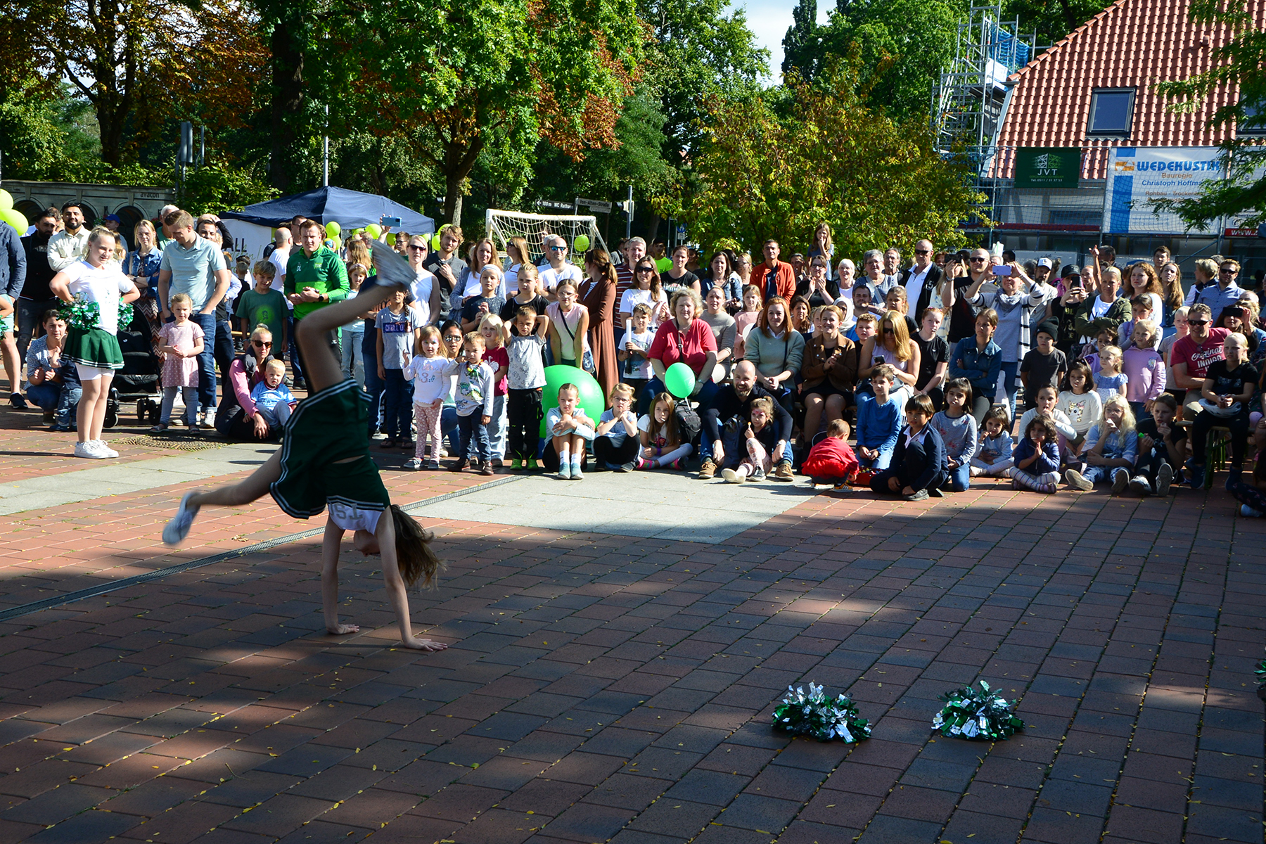 Am Ende der Von-Alten-Straße wartete traditionell die Turnerschaft Großburgwedel (TSG) auf die Besucher. Hier gab es nicht nur Informationen über die Angebote der TSG, sondern auch Vorführungen in Power Workout, Cheerleading und Rope-Skipping.