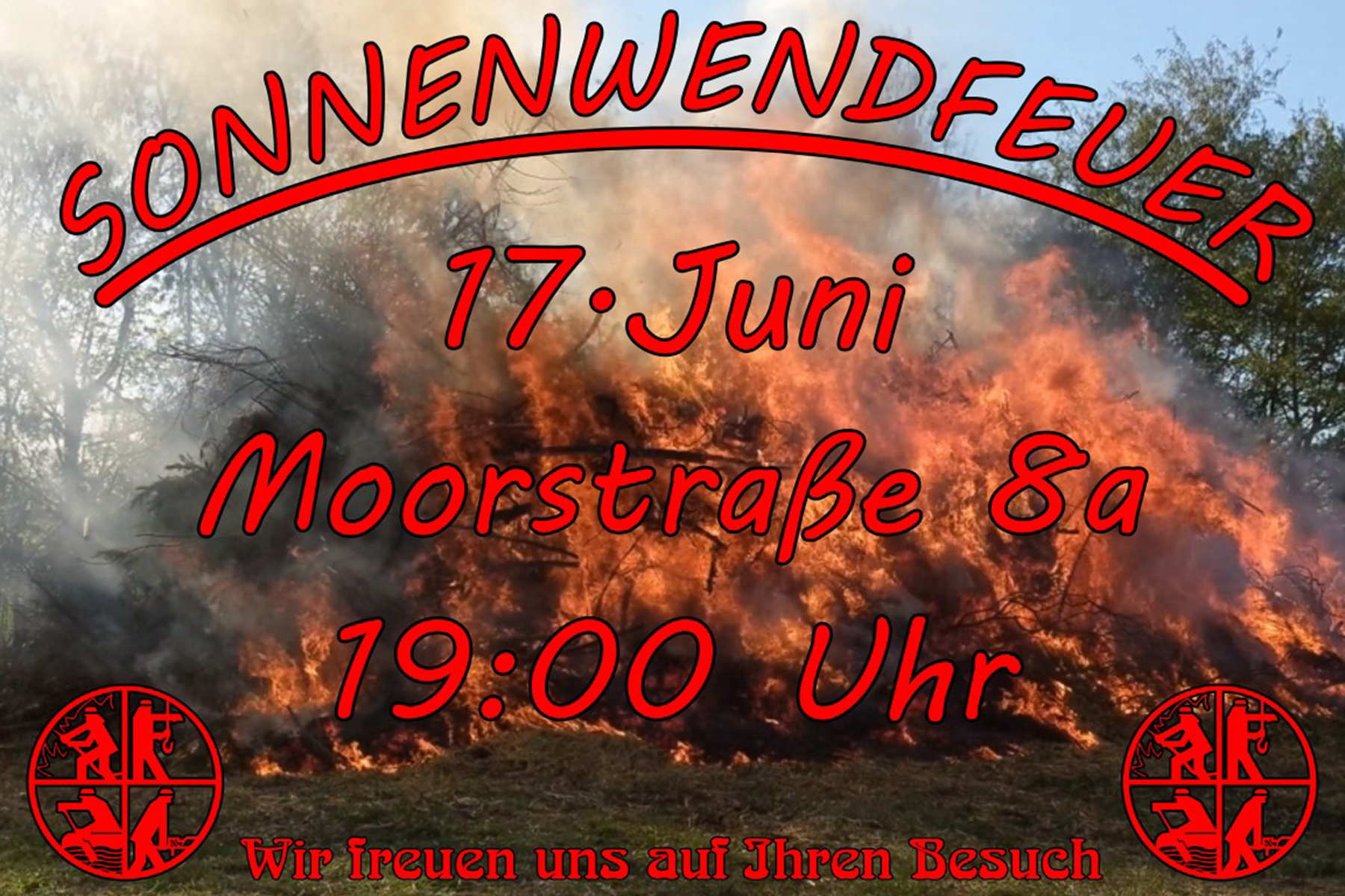 Am 17. Juni 2023 findet das Sonnwendfeuer der Feuerwehr Stelle am Feuerwehrhaus Moorstraße 8a statt. Start ist um 19 Uhr und gegen 19:30 Uhr wird das kleine Feuer durch die Jugendfeuerwehr Kirchhorst und Stelle angezündet. Für das leibliche Wohl ist mit gekühlten Getränken, Speisen vom Grill und die heiß begehrten Fischbrötchen gesorgt.