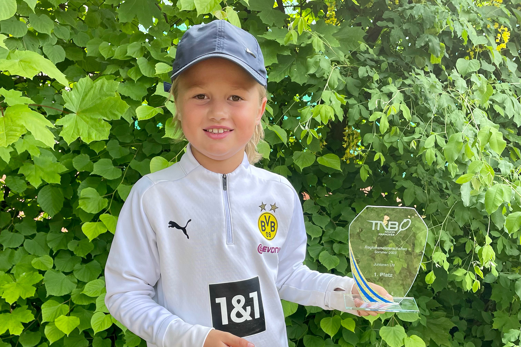 Milan Michelssen vom TC TSV Burgdorf hat bei den Tennis-Regionsmeisterschaften 2023 am Pfingstwochenende den 1. Platz in der Altersklasse U9 belegt.