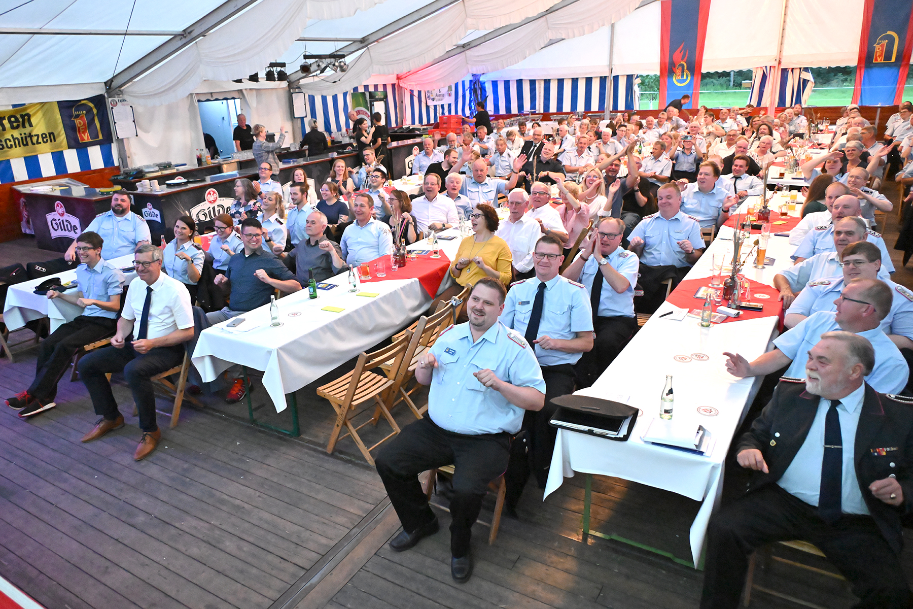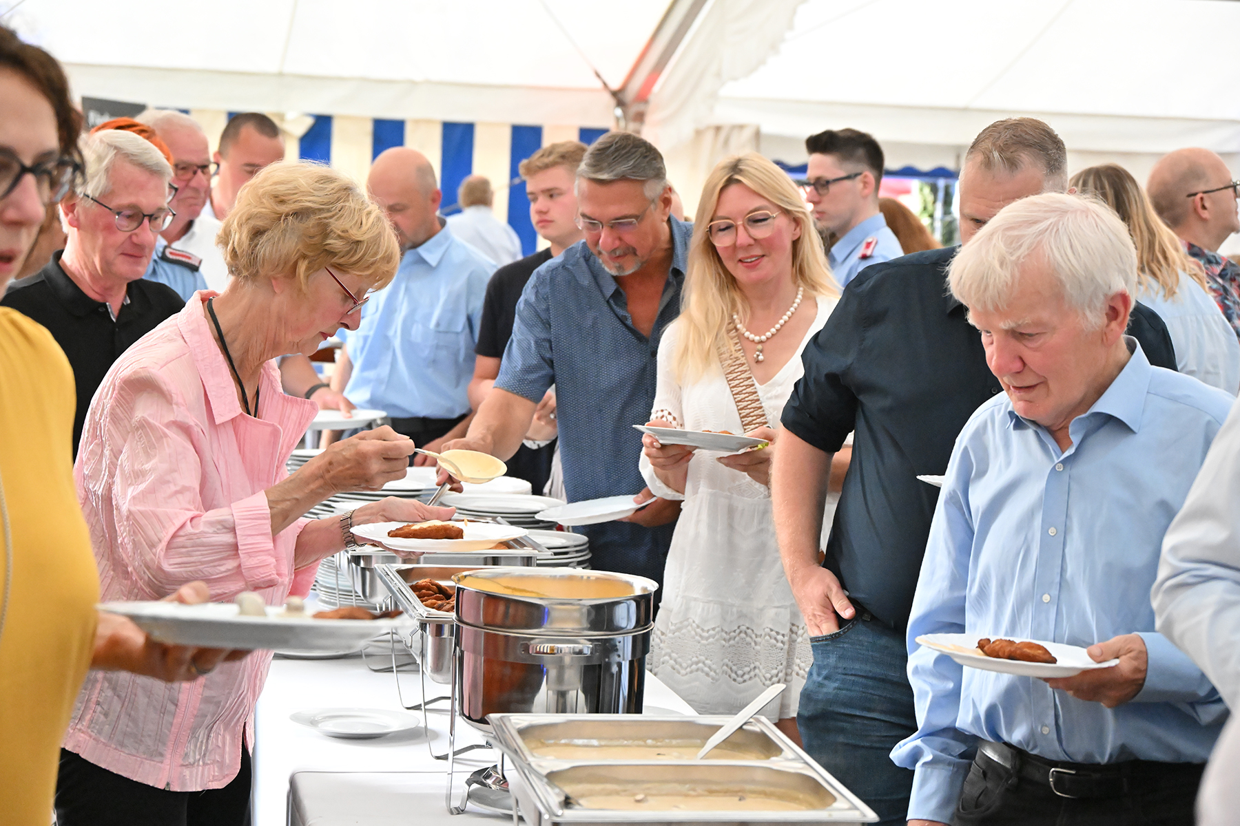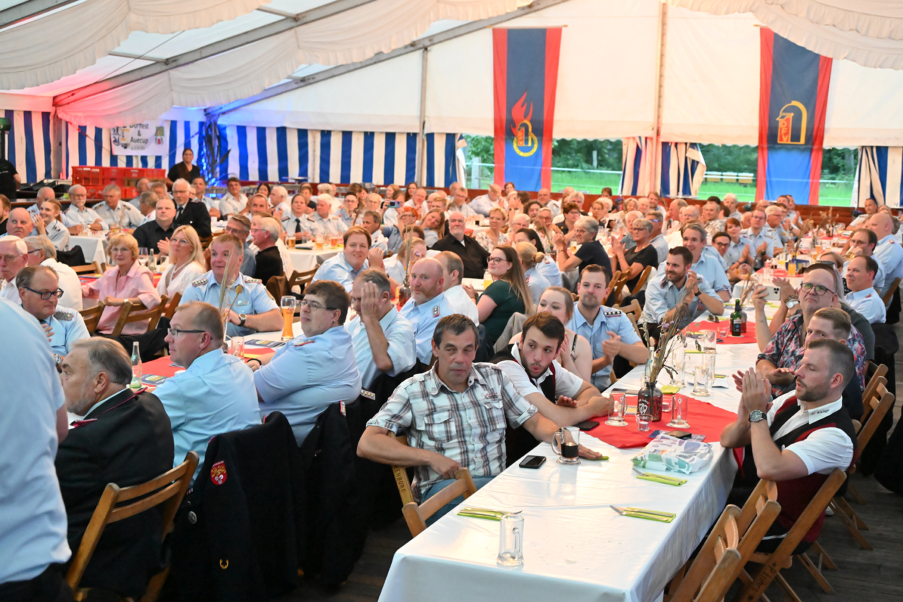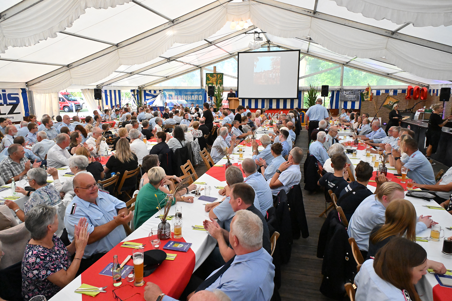 Rund 300 Gäste kamen zum Festauftakt. An der Spitze Regionsbrandmeister Karl-Heinz Mensing und Burgdorfs Bürgermeister Armin Pollehn sowie Stadtbrandmeister Dennis-Frederik Heuer. Zudem der Brandschutzabschnittsleiter Tobias Jacob, der Ehrenstadtbrandmeister Alfred Brönnemann, Ehrenortsbrandmeister Friedrich Plaß, die Ortsvorsteher aus Heeßel und Beinhorn, Heiko Reißer und Klaus Könecke, Abordnungen der Ortsfeuerwehren Burgdorf, Dachtmissen, Otze, Ramlingen-Ehlershausen, Schillerslage und Weferlingsen sowie Steinwedel, den Zugführer des Historischen Löschzugs, Werner Pauke, der ehemalige Bürgermeister Alfred Baxmann sowie eine Abordnung der Partnerfeuerwehr aus Colbitz (Sachsen-Anhalt). Zudem viele Bürger aus dem Ort wie auch die "Geburtstagskinder" selbst: Die Mitglieder der Ortsfeuerwehr Heeßel.