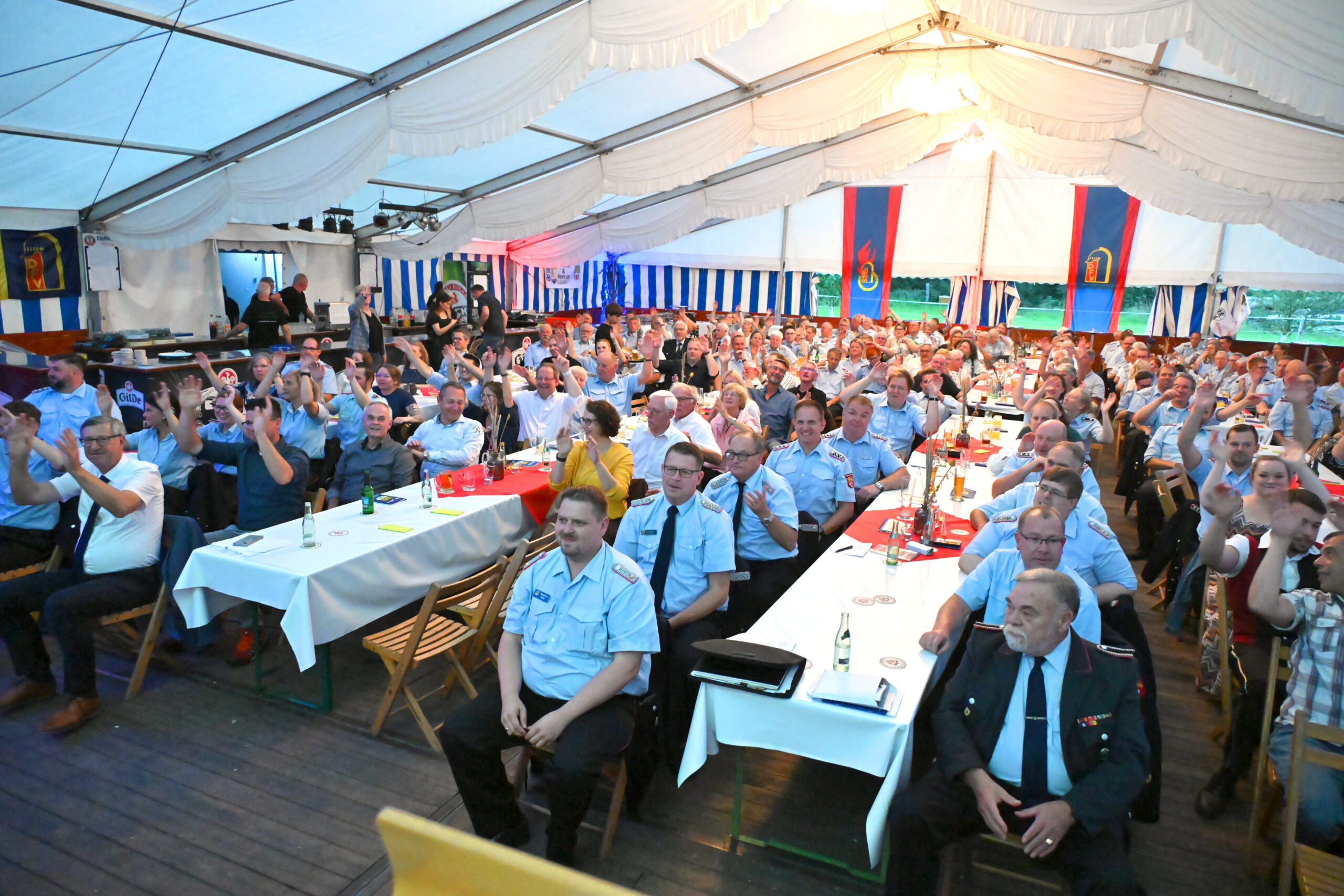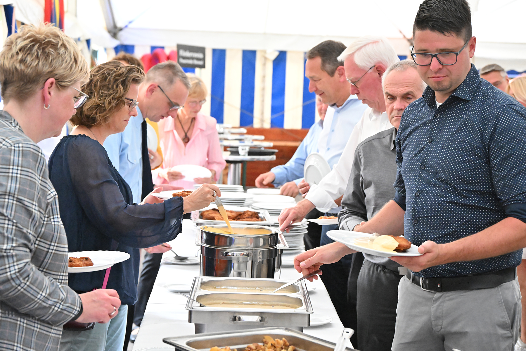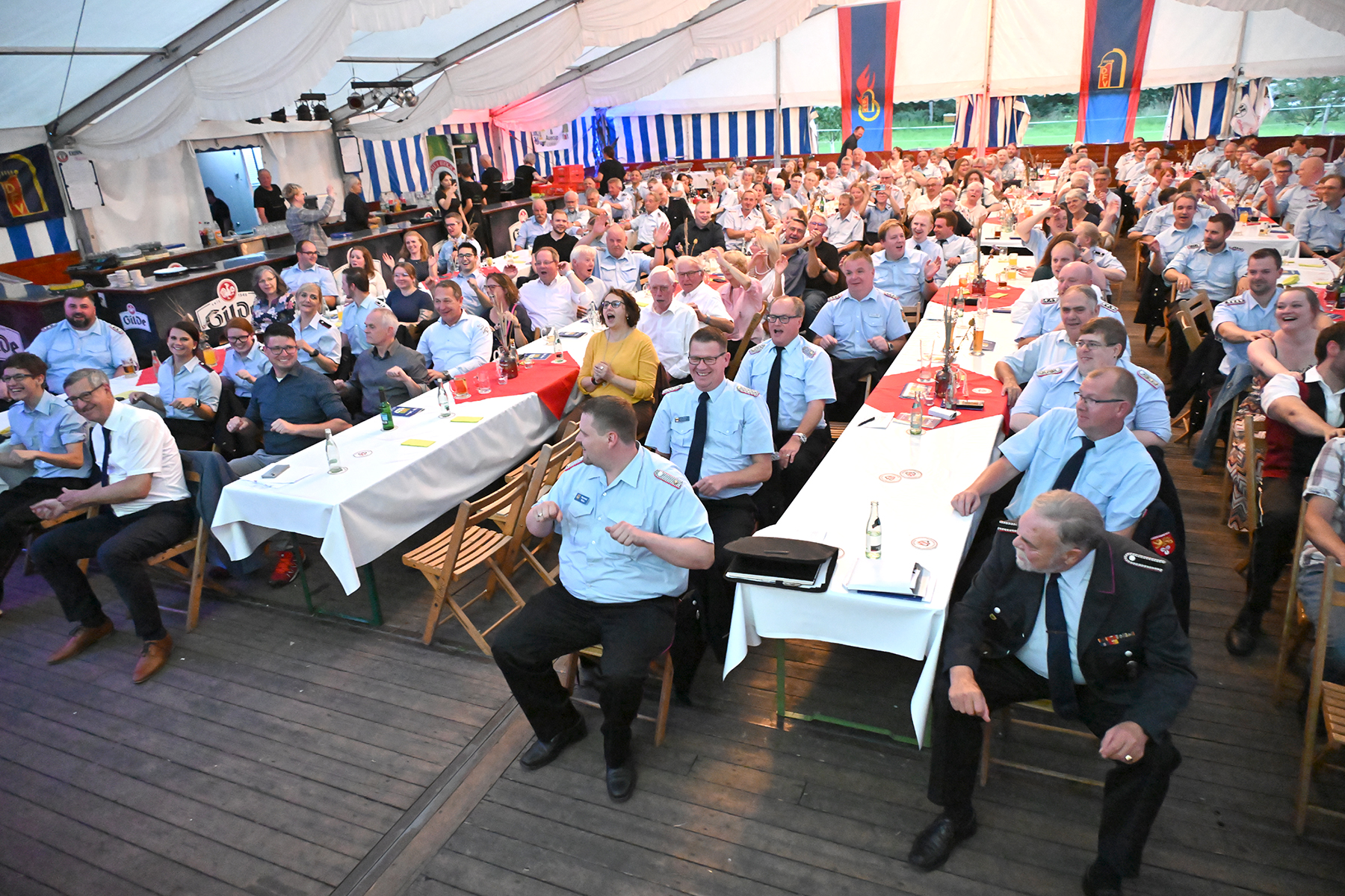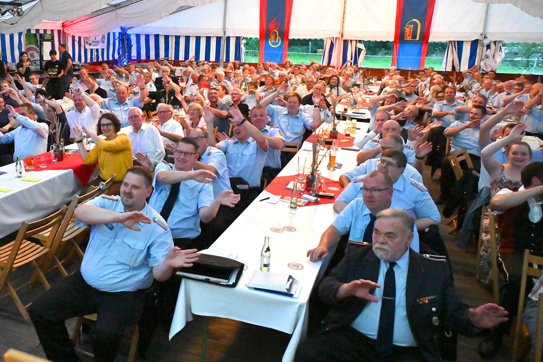 Rund 300 Gäste kamen zum Festauftakt. An der Spitze Regionsbrandmeister Karl-Heinz Mensing und Burgdorfs Bürgermeister Armin Pollehn sowie Stadtbrandmeister Dennis-Frederik Heuer. Zudem der Brandschutzabschnittsleiter Tobias Jacob, der Ehrenstadtbrandmeister Alfred Brönnemann, Ehrenortsbrandmeister Friedrich Plaß, die Ortsvorsteher aus Heeßel und Beinhorn, Heiko Reißer und Klaus Könecke, Abordnungen der Ortsfeuerwehren Burgdorf, Dachtmissen, Otze, Ramlingen-Ehlershausen, Schillerslage und Weferlingsen sowie Steinwedel, den Zugführer des Historischen Löschzugs, Werner Pauke, der ehemalige Bürgermeister Alfred Baxmann sowie eine Abordnung der Partnerfeuerwehr aus Colbitz (Sachsen-Anhalt). Zudem viele Bürger aus dem Ort wie auch die "Geburtstagskinder" selbst: Die Mitglieder der Ortsfeuerwehr Heeßel.