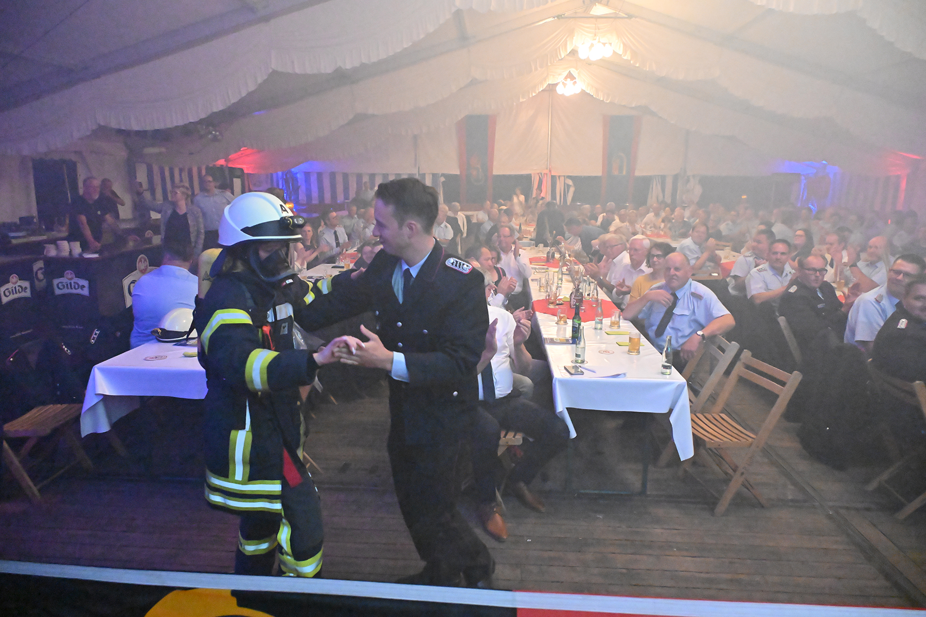 Unter Begleitung des Musikzuges der Freiwilligen Feuerwehren Burgdorf und Hänigsen sowie zwei kleinen Showeinlagen durch die Mitglieder der Ortsfeuerwehr (der Wettkampfgruppe wie auch der weiblichen Mitglieder) endete der rund vierstündige Festkommers mit besonderen Ehrungen und Auszeichnungen.