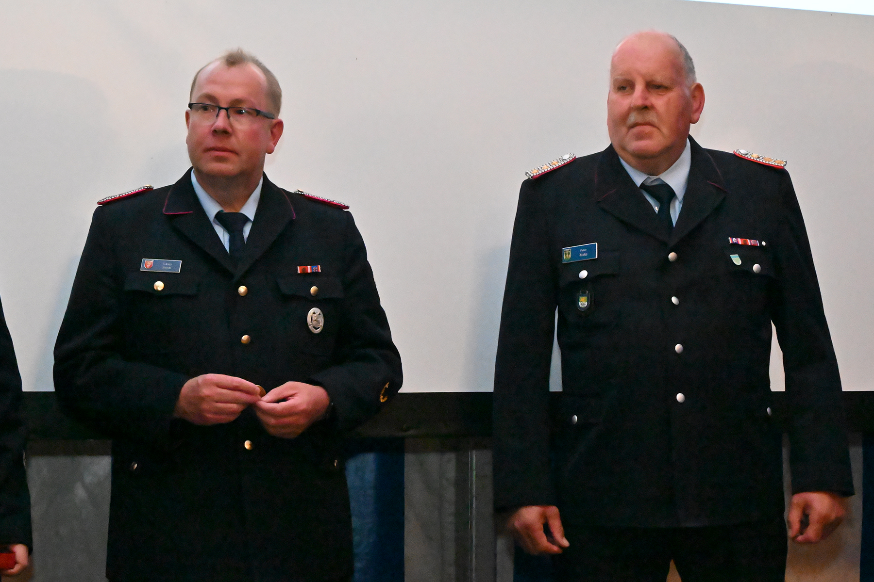 Zunächst entpflichtete Bürgermeister Pollehn den scheidenden Ortsbrandmeister zum 31. August. Zum "alten Eisen" gehöre es jedoch nicht und werde in der Ausbildung wie auch bei Einsätzen noch dabei sein, wie die Gäste wissen ließ. Anschließend wurde Karsten Lübbe zum Ehrenortsbrandmeister der Ortsfeuerwehr Heeßel ernannt. Dann konnte die neue Feuerwehrspitze verpflichtet werden: Zum 1. September ist Reinhard Nicks Ortsbrandmeister und Marc-Robert Krey sein Stellvertreter.