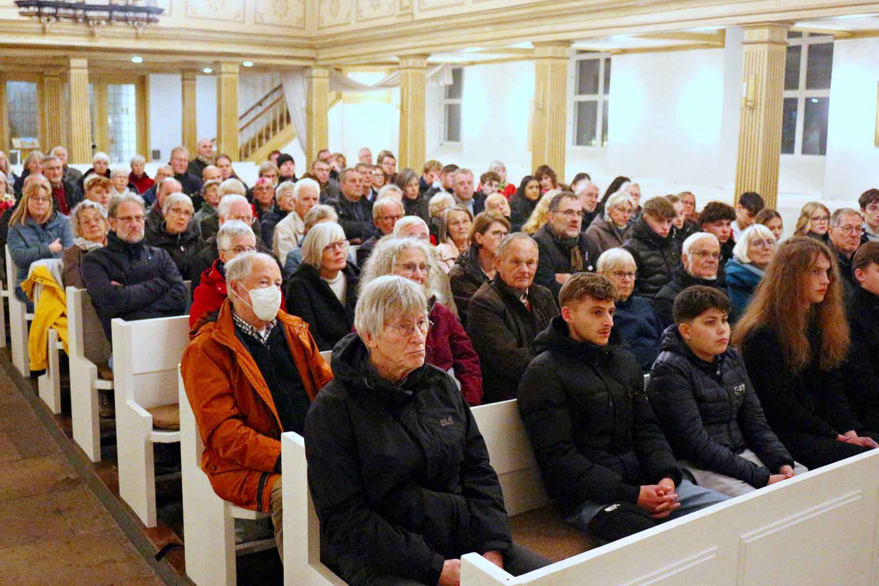 Angesichts der brutalen Realitäten im "Gelobten Land" (Kanaan), sahen sich die rund 150 Gedenkweg-Teilnehmer nun mit der entsetzlichen Aktualität konfrontiert. Dem Rundgang schloss sich ein Vortrag von Burgdorfs Altbürgermeister Alfred Baxmann zum Thema "Antisemitismus" an. Wegen der großen Anzahl an Interessierten, musste diese Veranstaltung von der KulturWerkStadt, der ehemaligen Burgdorfer Synagoge, in die nahe evangelisch-lutherische St. Pankratiuskirche umgeleitet werden.