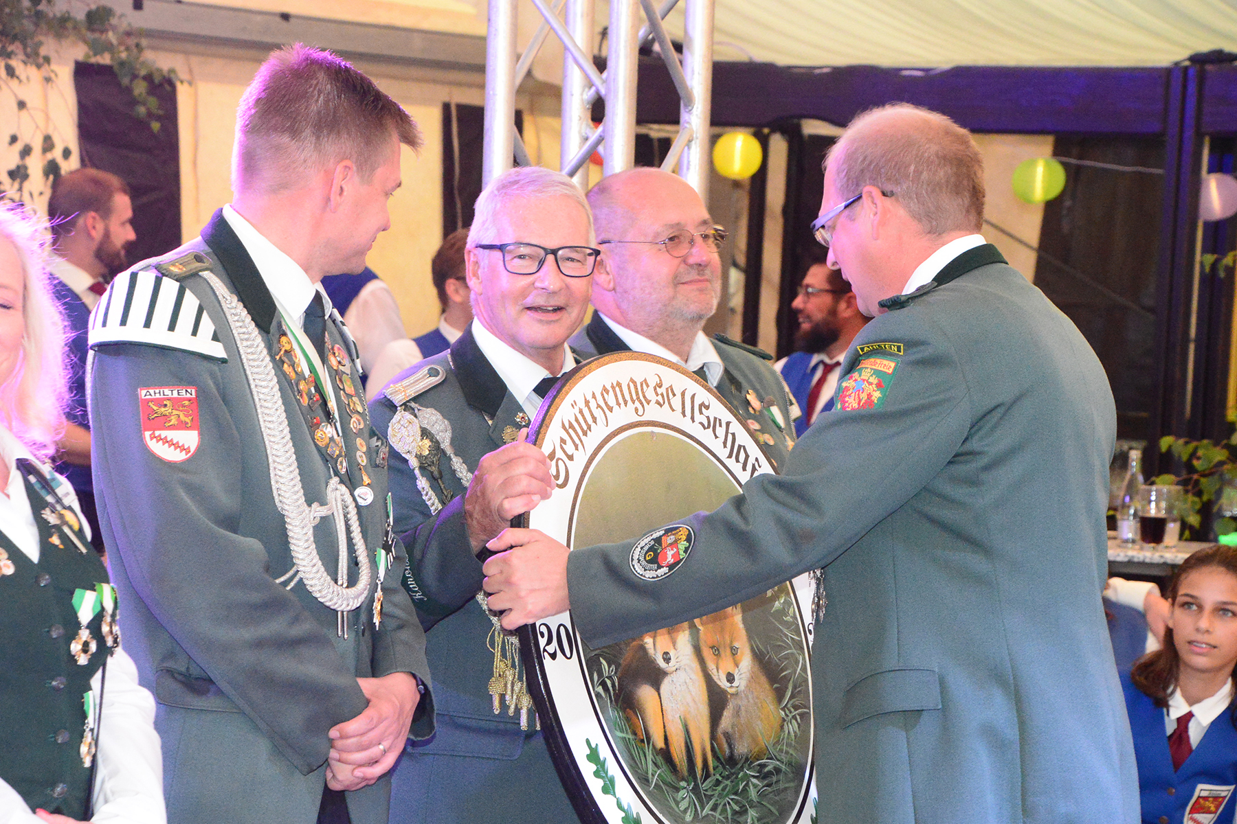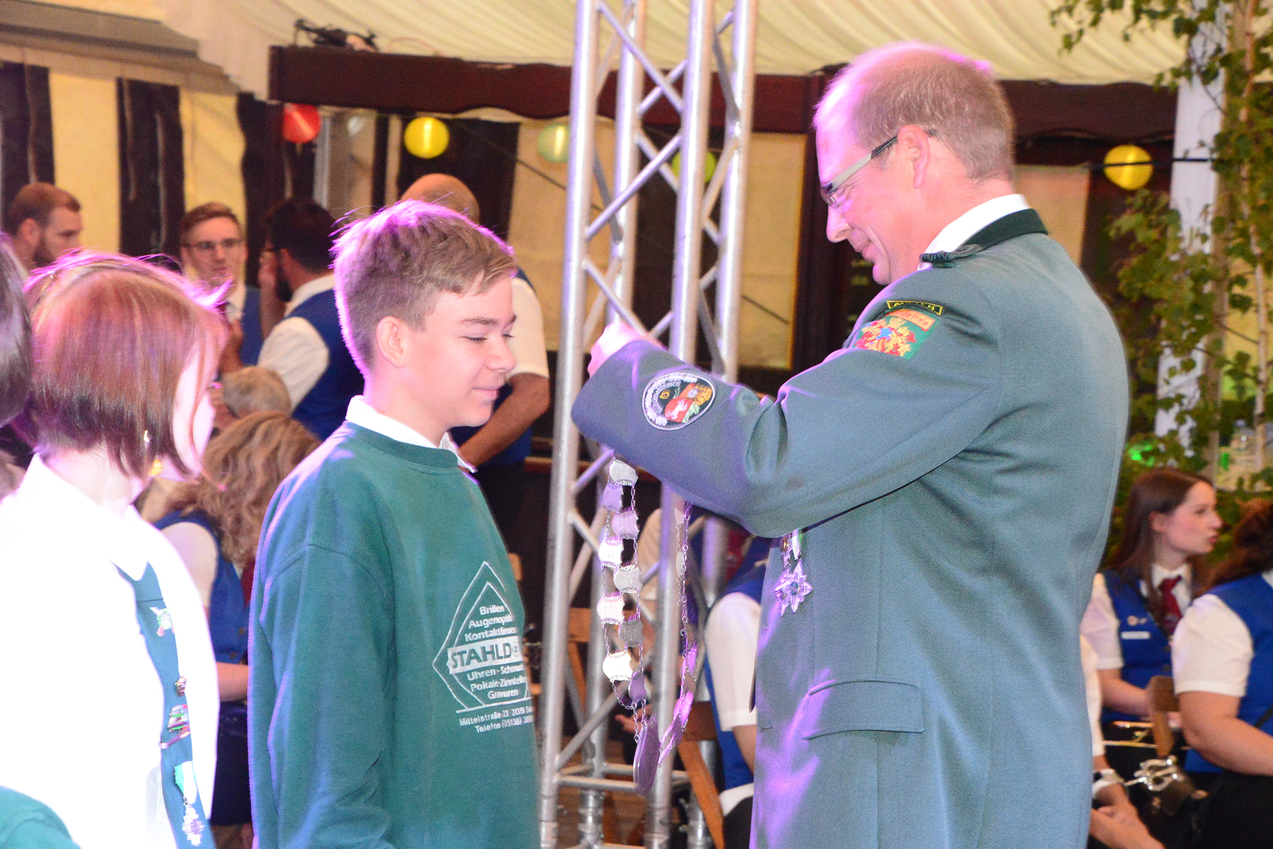 Doch zunächst zeichnete der Spielmannszug seine Besten aus: Isabell Fichtner und Florian Zehe gewannen die Wettbewerbe. Anschließend wurde zum ersten Mal in der Vereinsgeschichte die Würde des Vogelkönigs verliehen. Ellen Busche hatet den Wettbewerb gewonnen und wurde mit einem Orden ausgezeichnet.