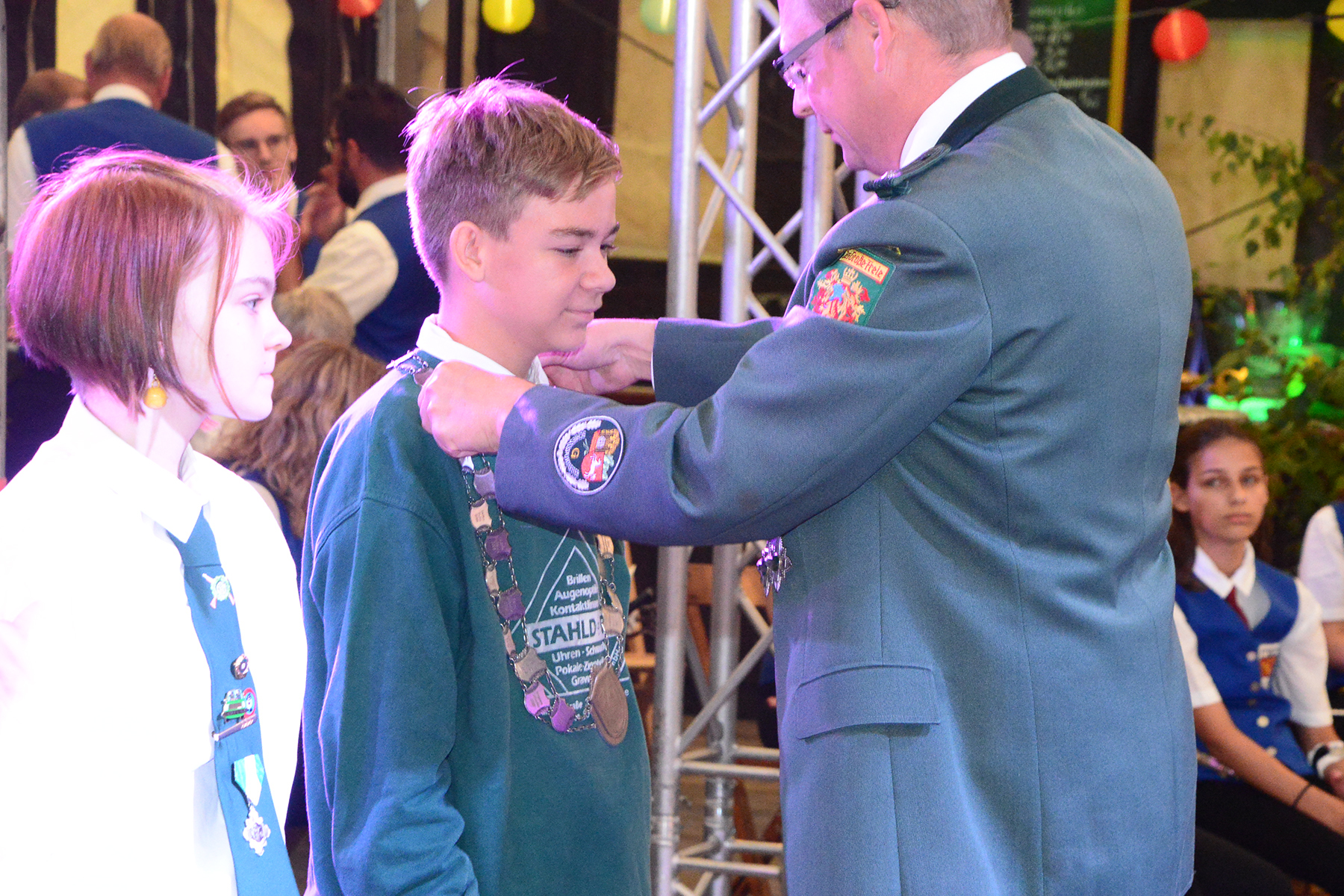 Mit ihren Königsketten wurden die weiteren Majestäten ausgezeichnet. Träger der Kette des Lichtpunktkönigs ist Linus Schröder, ihm zur Seite steht der 1. Knappe Luis Güttler. Die Kette des Jugendkönigs trägt Fin Güttler, das 1. Burgfräulein heißt Tanja Dreves. Bei den Jungschützen setzte sich Matthias Kulla durch. 1. Hofdame ist Ann Marie Kuwan und 2. Hofdame Diana Dreves.