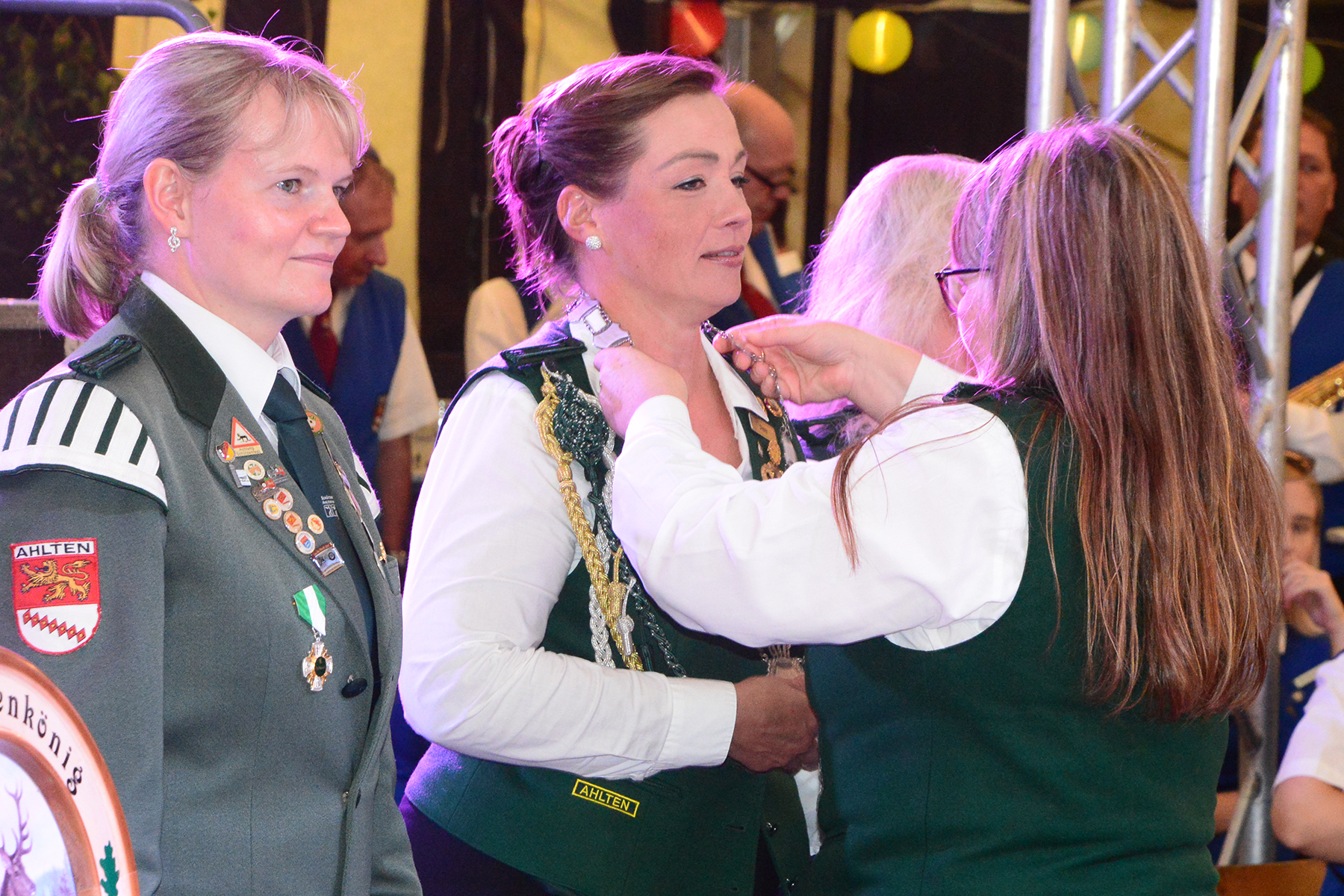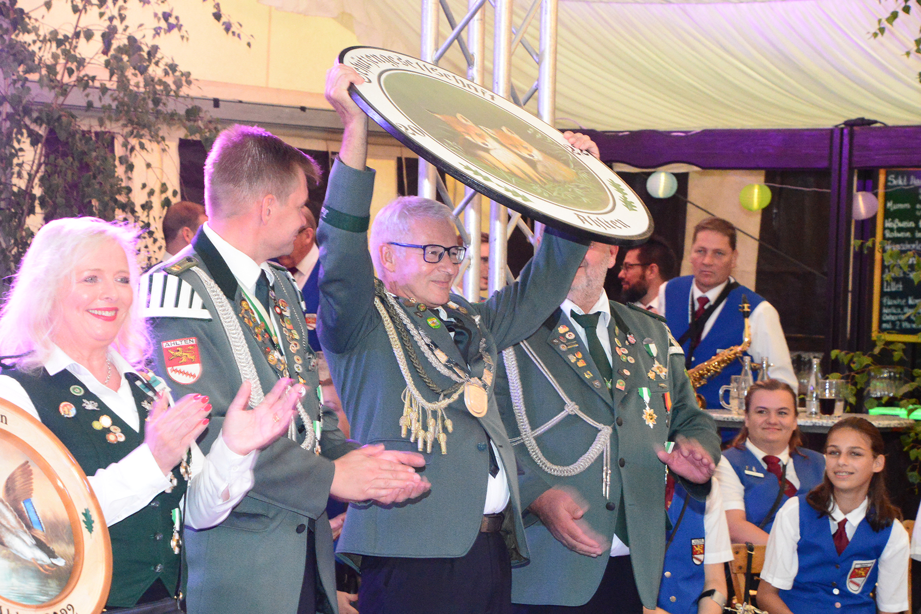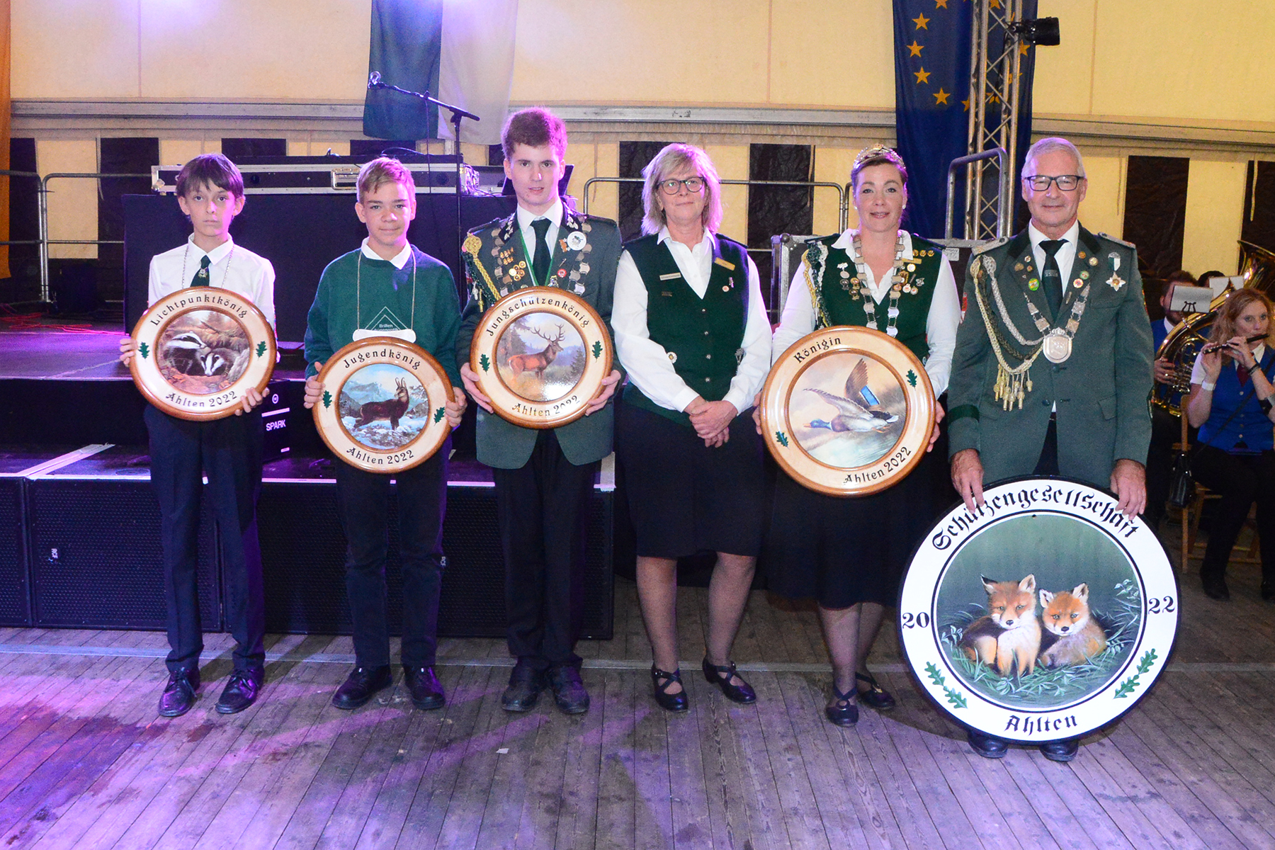 Damit waren aber noch nicht alle Posten der Majestäten vergeben. Bis zum Schützenfestsonnabend bleibt geheim, wer denn die Würde des Volkskönigs errungen hat. Gewonnen hat Sina Blomberg, die als Mitglied der Ahltener Musikanten an dem Abend auch für den musikalischen Rahmen gesorgt hatte. 1. Ritter wurde Bernhard Hebbelmann und 2. Hofdame ist Claudia Schneider.