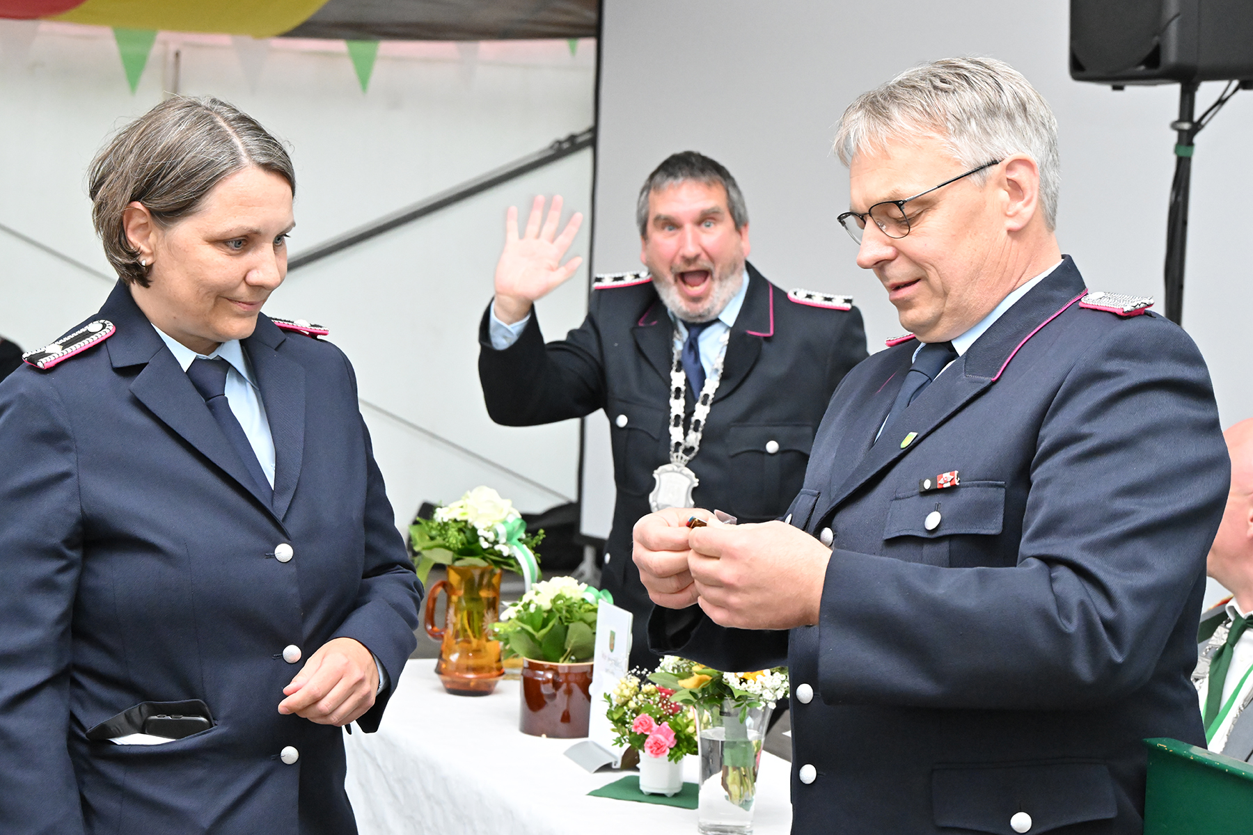 Mit Spannung wurde dann die Bekanntgabe der neuen Könige verfolgt. Der stellvertretende Ortsbürgermeister Burghard Homann verkündete Matthias Müller als neuen Volkskönig, der sich mit seinem 131,4-Teiler durchgesetzt hatte.