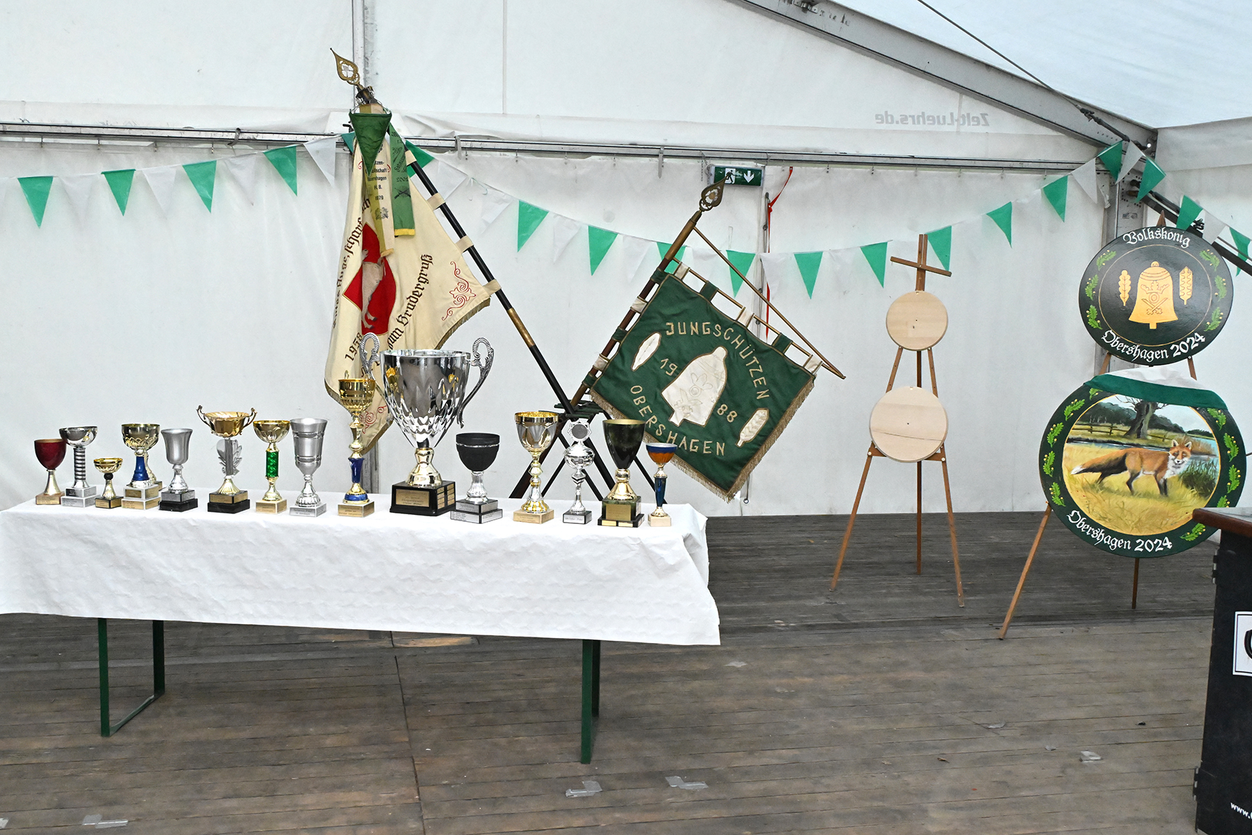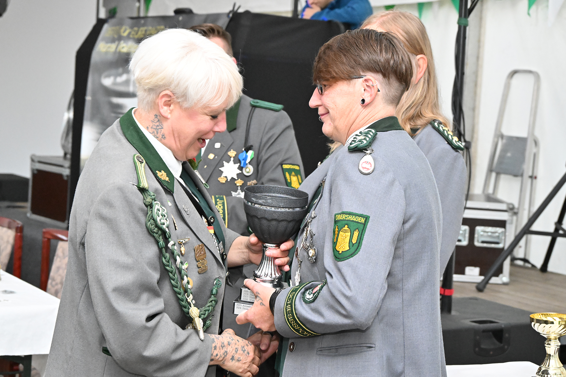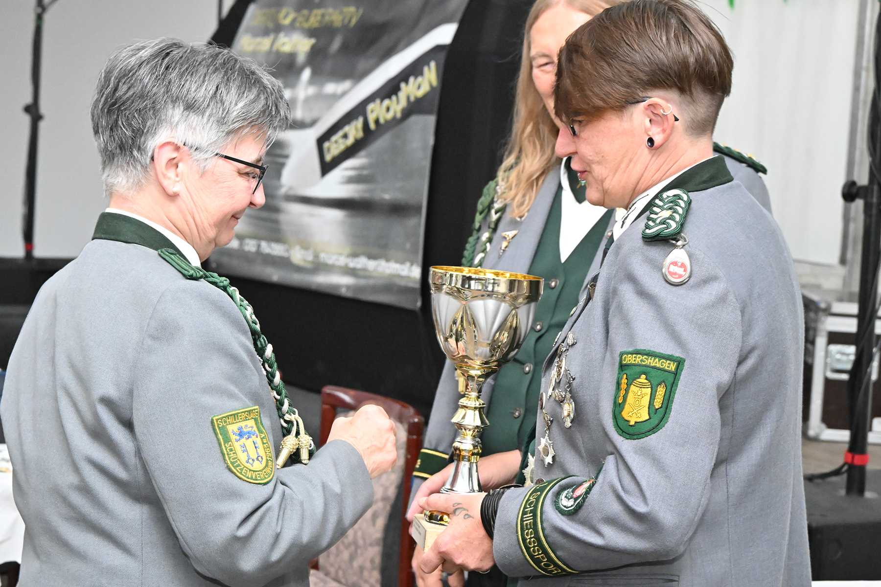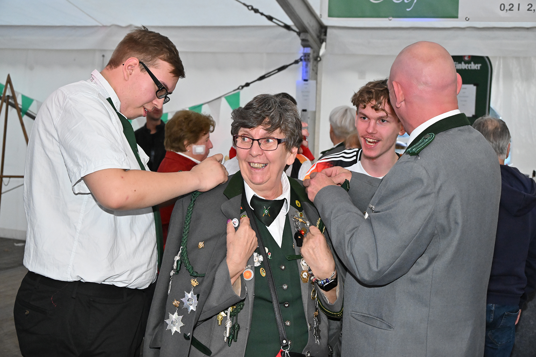 Ehe jedoch die neuen Majestäten bekannt gegeben wurden, standen die Preisverleihungen der Pokale auf dem Programm. Hier wurde schon ersichtlich, welche Namen beim Königsschießen ebenfalls eine große Rolle spielen könnten: Tobias Oskar Hoffmann, der sich den 21-Ring-Pokal, den 30-Ring-Pokal der Kinder, den 333-Teiler-Pokal und den Rote-Laterne-Pokal holte, ebenso wie sein Bruder Christopher Robin Hoffmann, der den Oppermann Kinder-Pokal gewann. Alicia Kohlmeyer sicherte sich den Nachwuchs-Pokal Jugend und den Jugend Wander-Pokal. Der Oppermann Jugend-Pokal ging an Marlon Kuschick und den Auenixen-Pokal holte sich Marie-Ann Beinsen. Plaketten gewannen Christopher Robin Hoffmann, Marlon Kuschick und Nadin Hoppe-Bukoll.