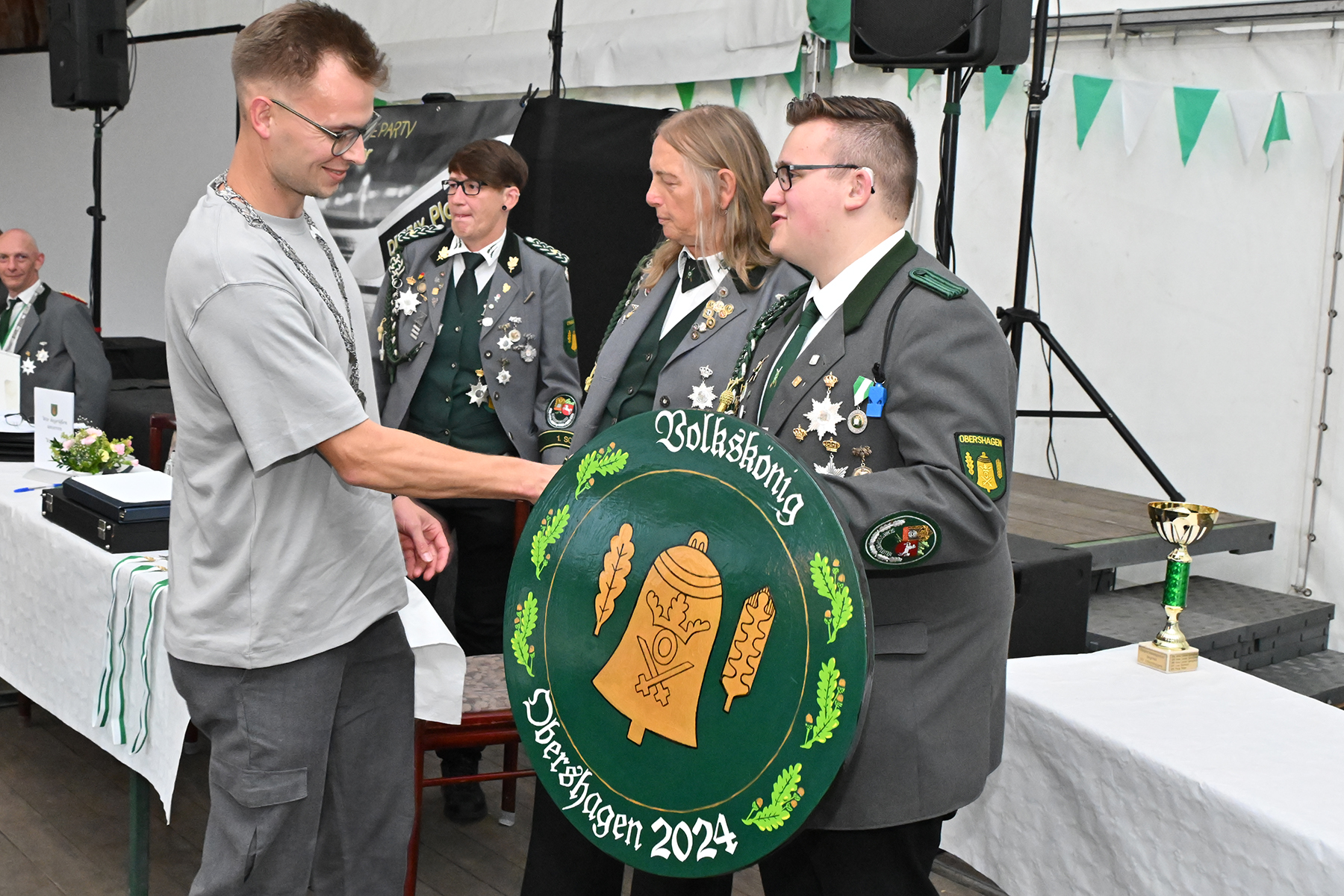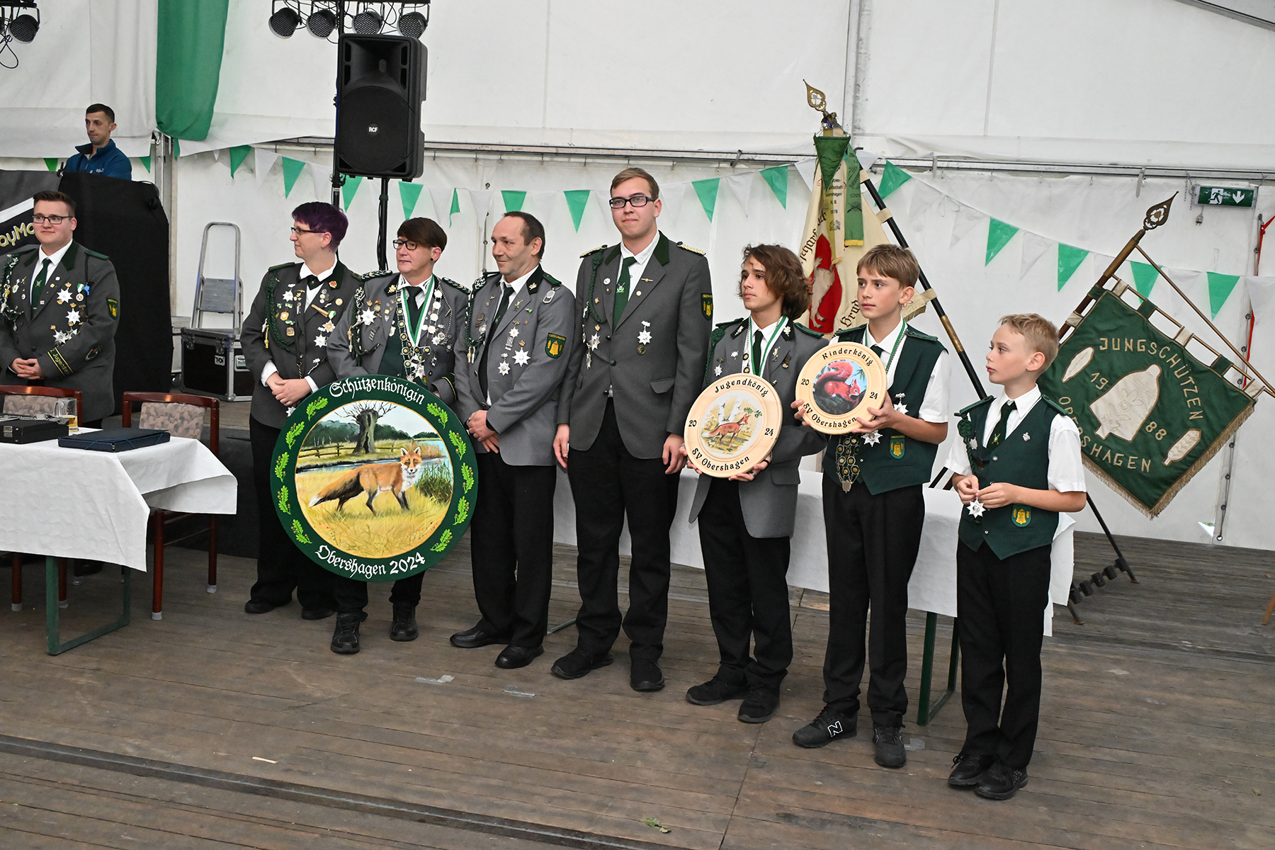 Rund 200 Gäste wollten sich den ersten Höhepunkt des Volks- und Schützenfestes in Obershagen nicht entgehen lassen. Beim Festkommers am gestrigen Freitag, 5. Juli 2024, wurden die neuen Könige bekannt gegeben.