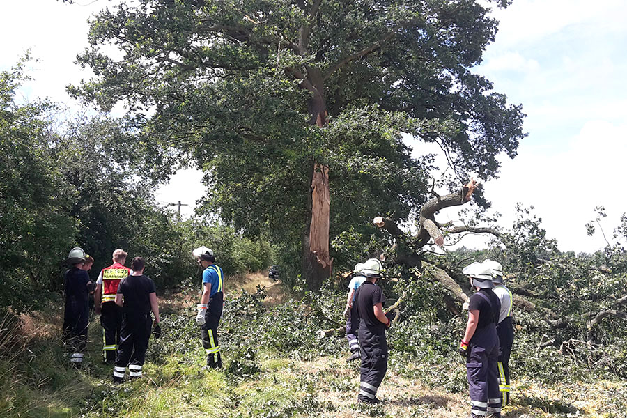 Am heutigen Sonntagmorgen, 10. Juli 2016, wurde eine Spaziergängerin auf eine stark beschädigte große Eiche an der Schnellfahrstrecke der Deutschen…